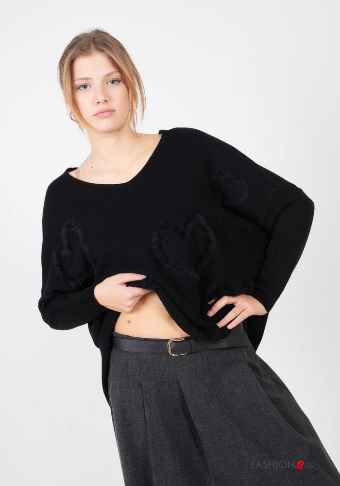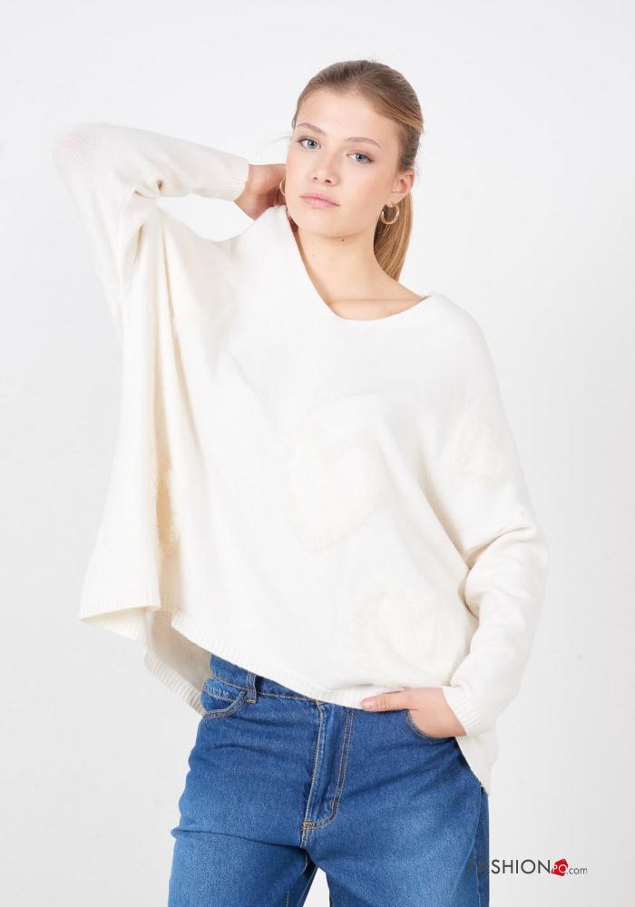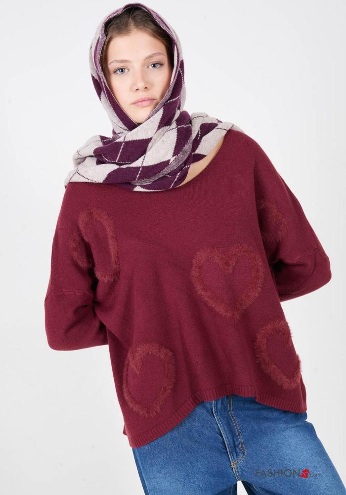 Herzmuster lange ärmel u-boot ausschnitt Strickpullover