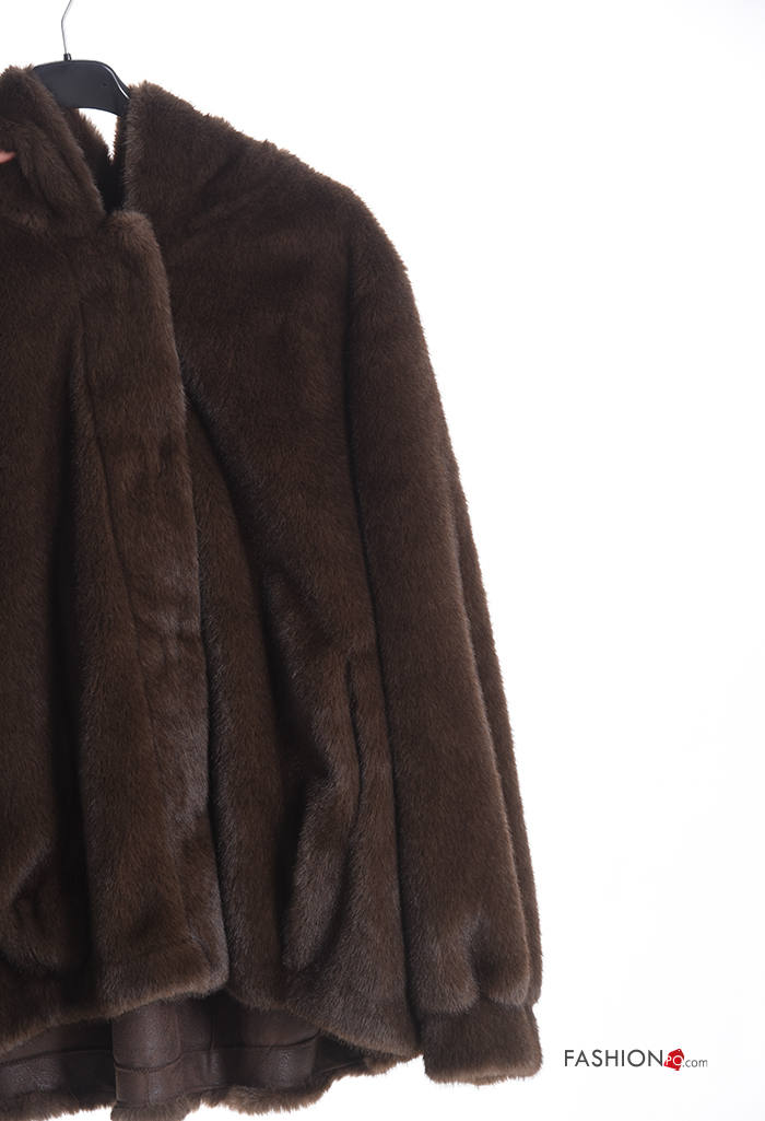 Kunstfell Mantel mit Knöpfen mit Taschen