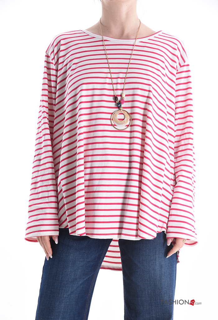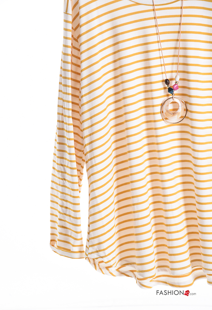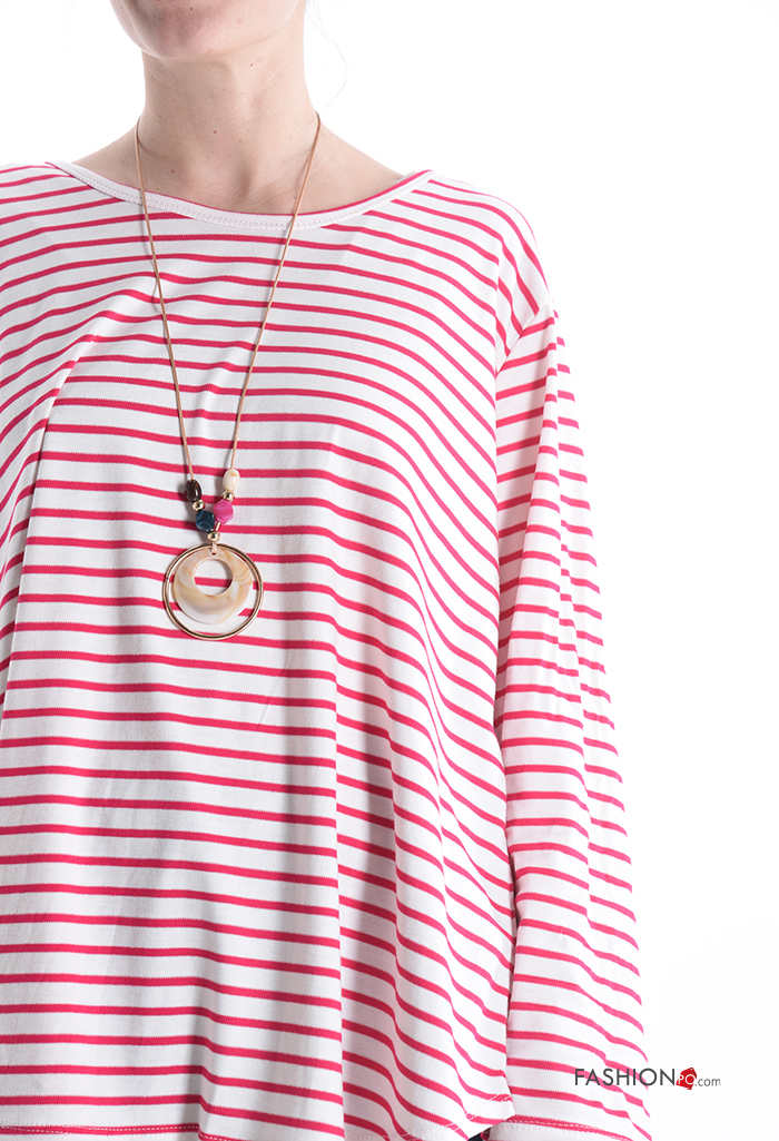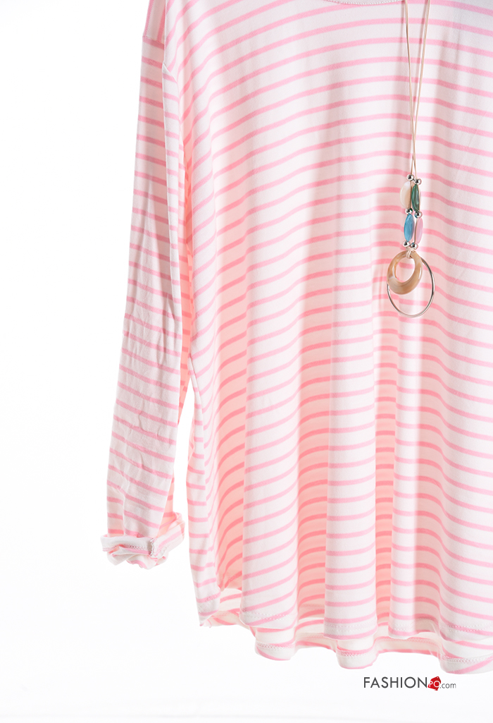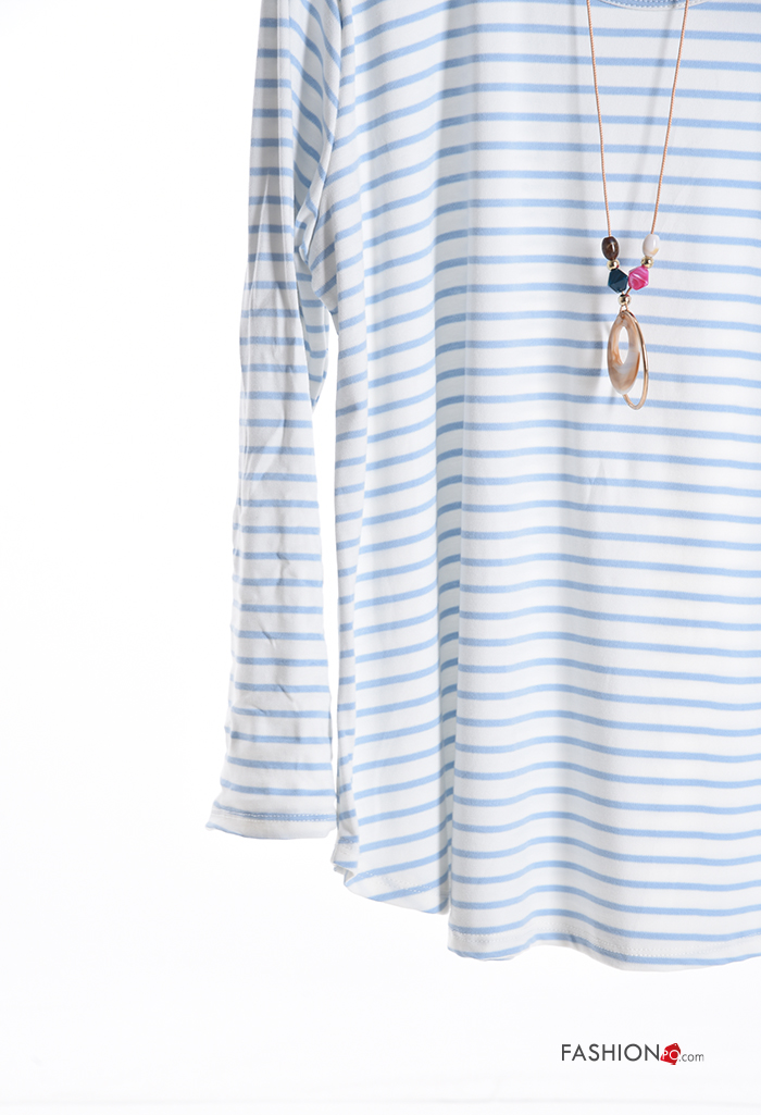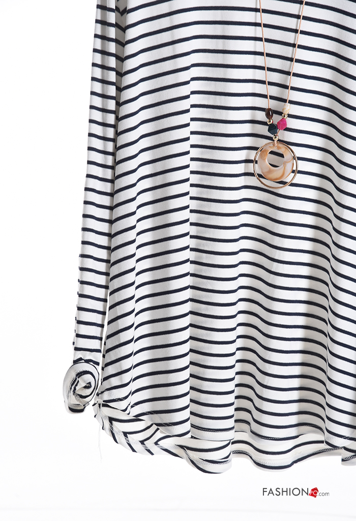 Streifenmuster u-boot ausschnitt Langarmshirt mit Halskette