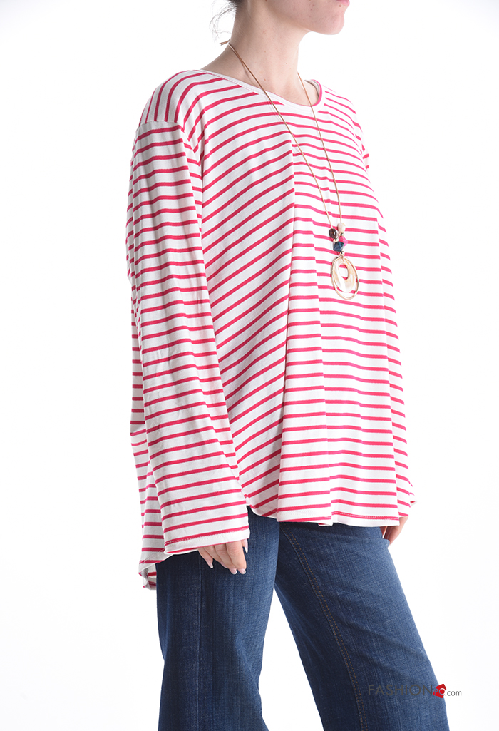 Home > Brands > GIOVANNI MODA > Streifenmuster u-boot ausschnitt Langarmshirt mit Halskette