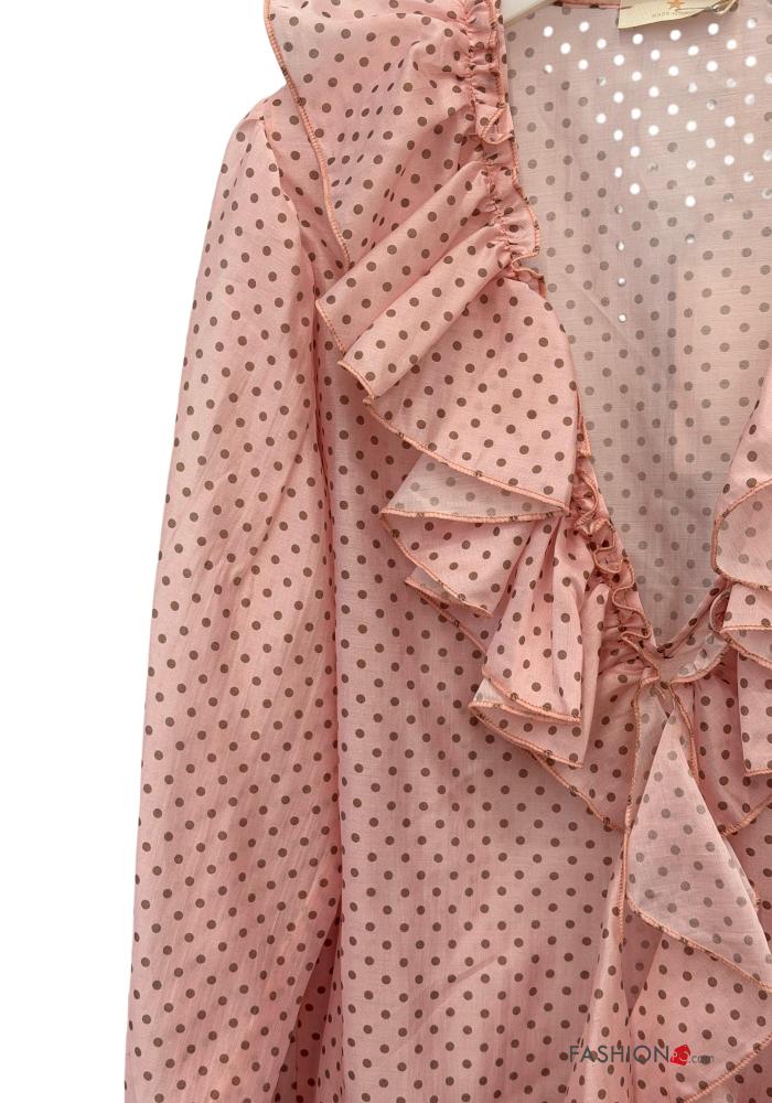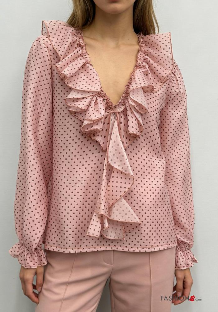 gepunktet Bluse mit V-Ausschnitt