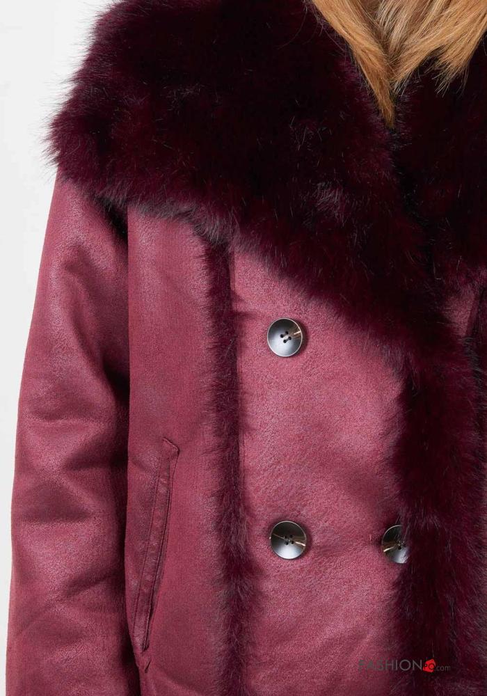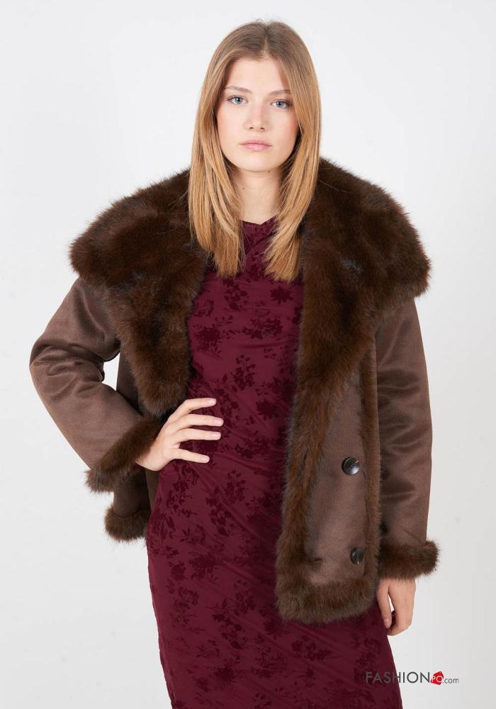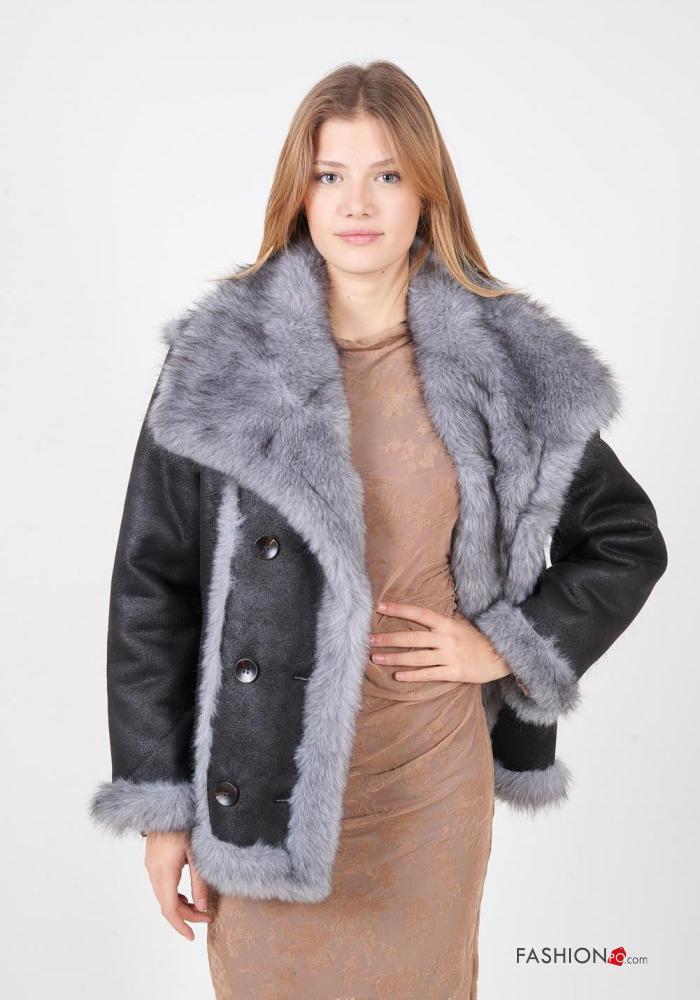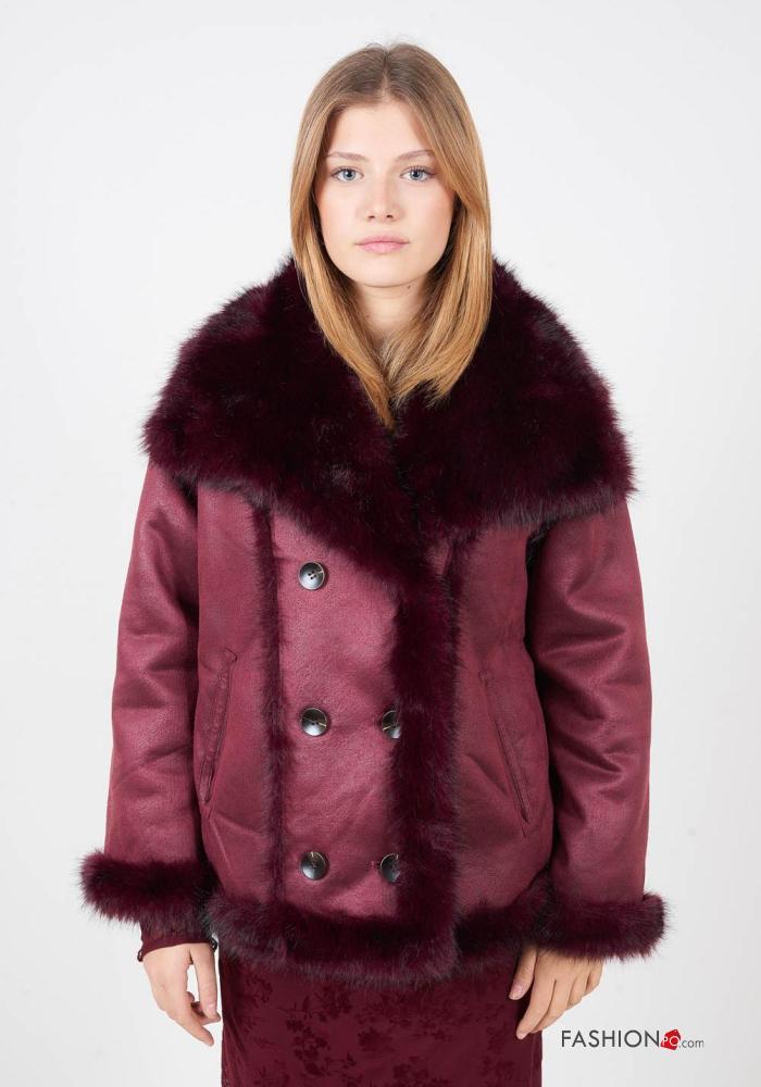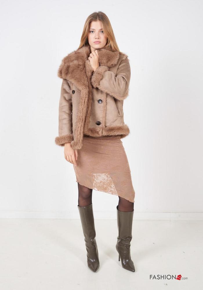 doppelreihig lange ärmel Kunstfell Mantel mit Knöpfen