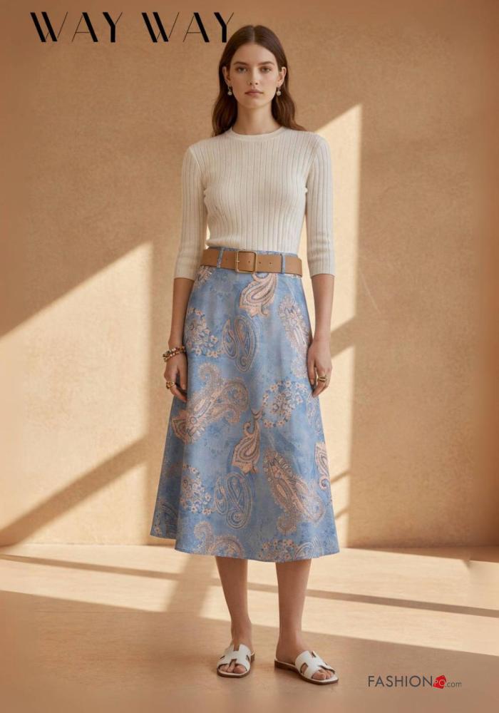 Home > Kleidung > Röcke > Paisley Muster hoher Taille Rock mit Gürtel