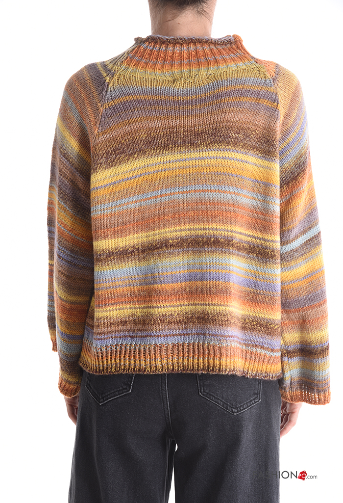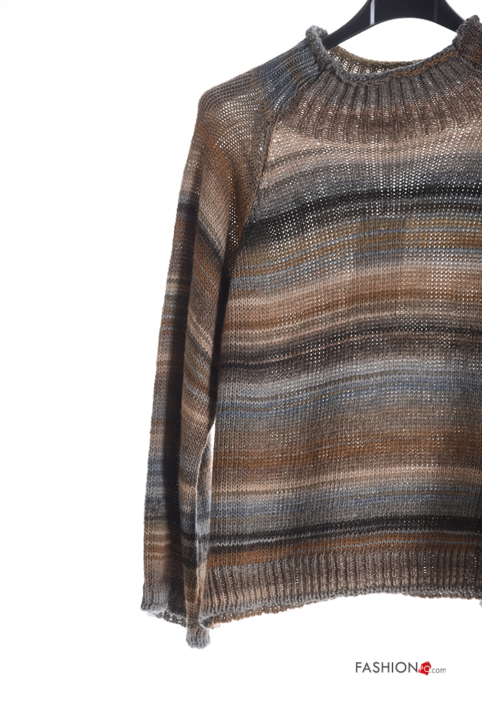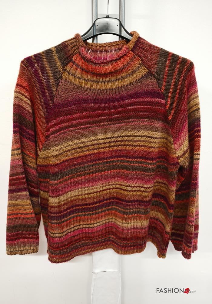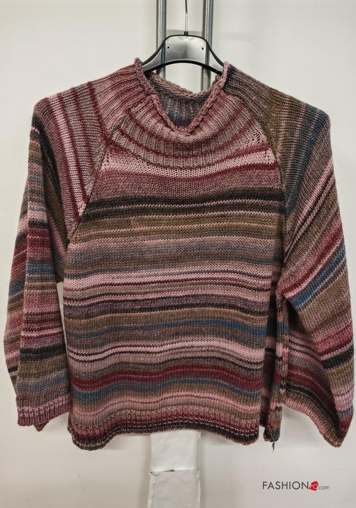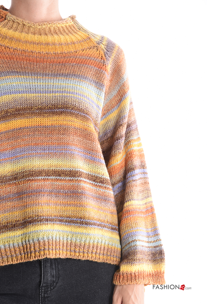 Home > Kleidung > Strickmode & Cardigans > Streifenmuster lange ärmel Strickpullover aus Wollmischung Rollkragen-