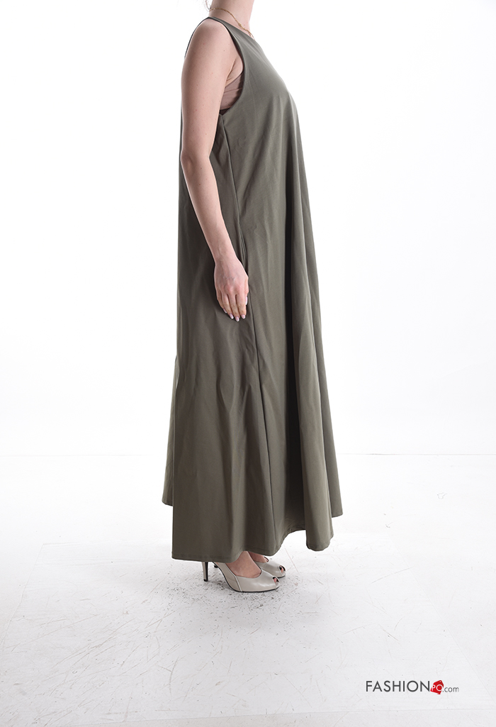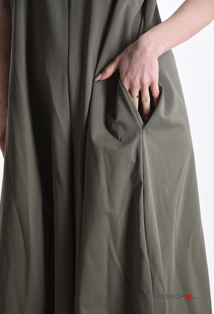 sleeveless wide leg Cotton Jumpsuit with pockets with zip