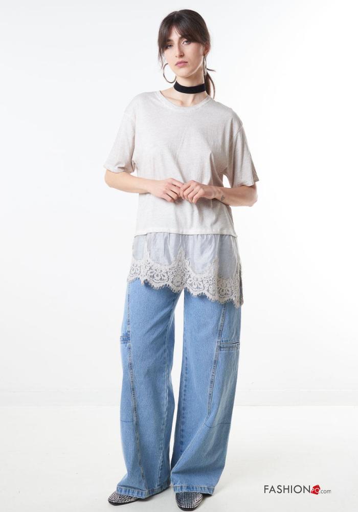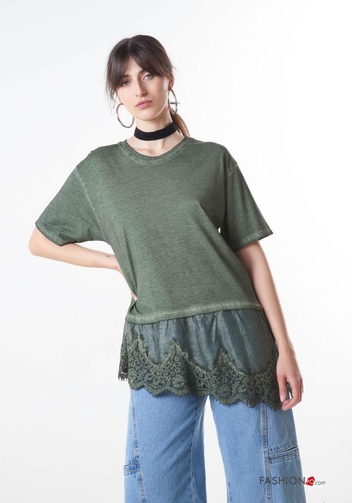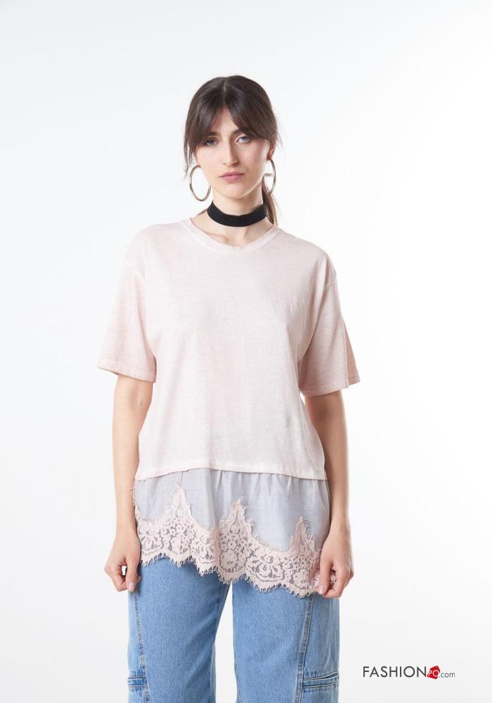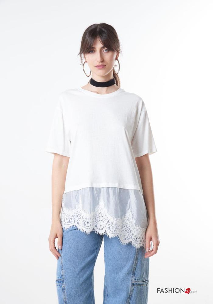 Home > Clothing > T-shirts & Tops > lace trim Cotton T-shirt