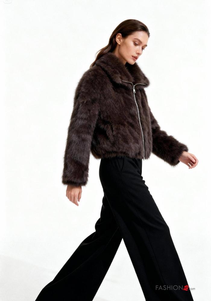 Home > Brands > RENAI MODA > Chaqueta piel sintética con cremallera de cuello alto con forro