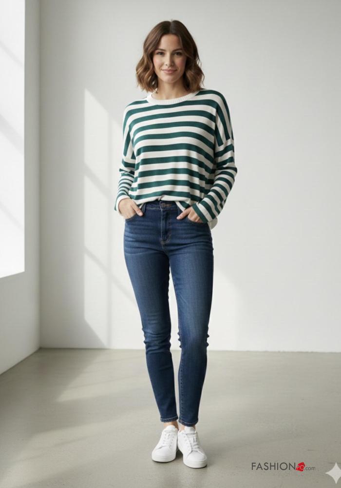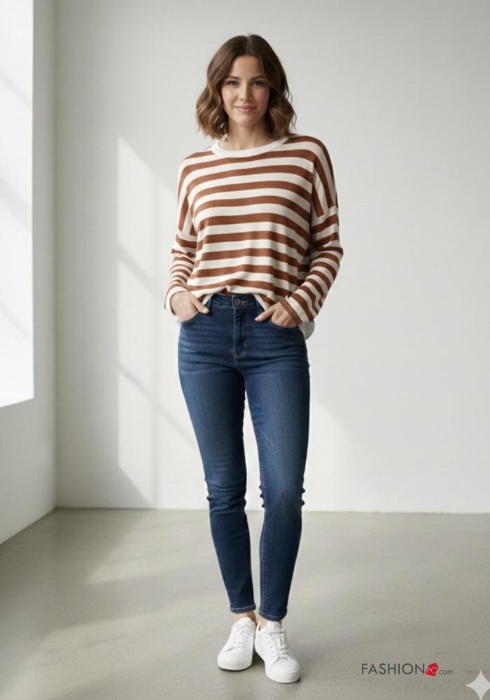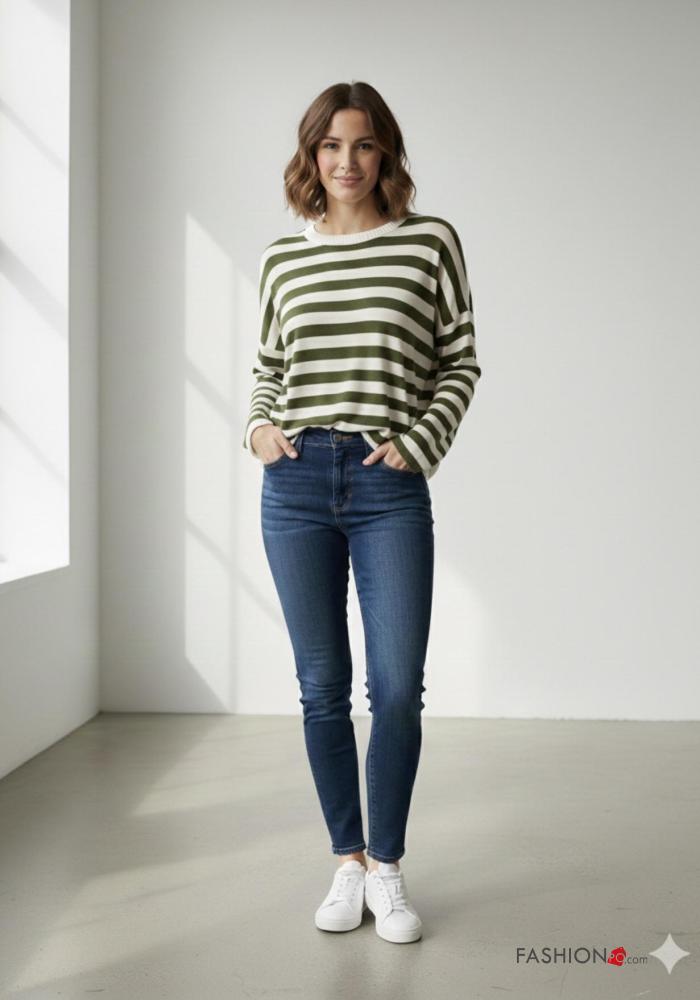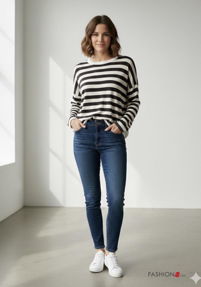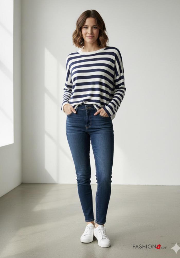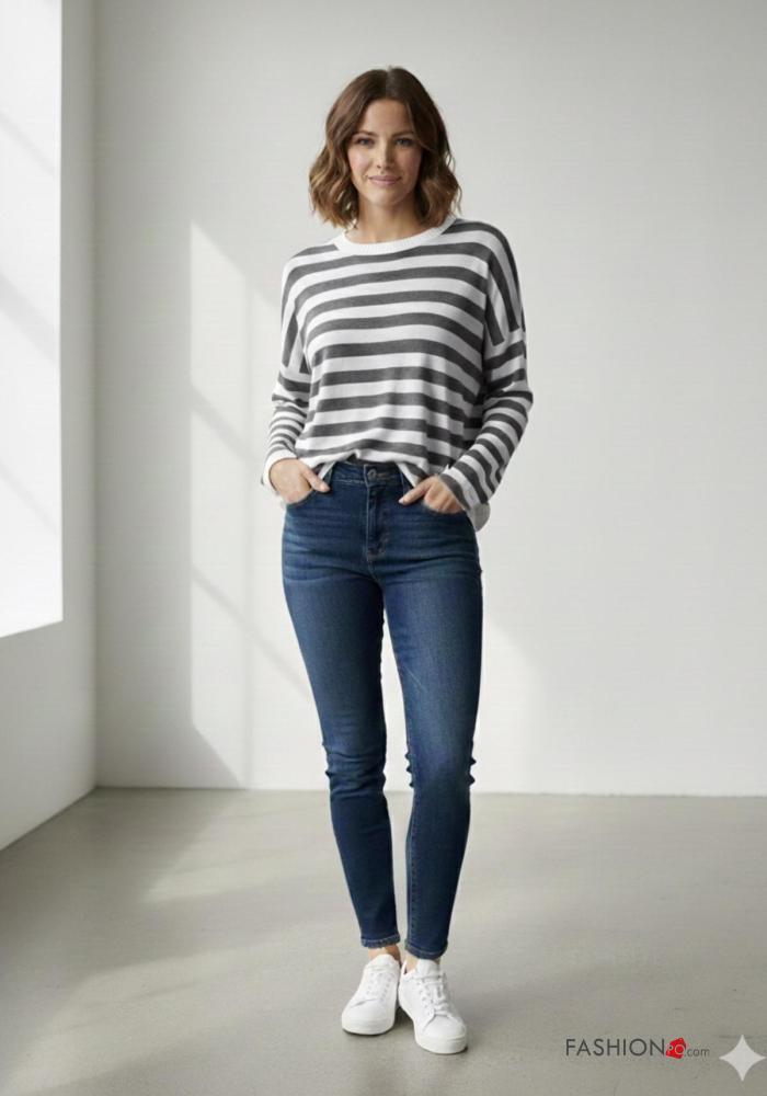 Home > Ropa > Camisas y Blusas > Camiseta de manga larga cuello redondo a rayas