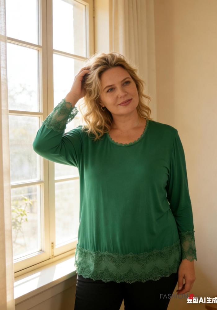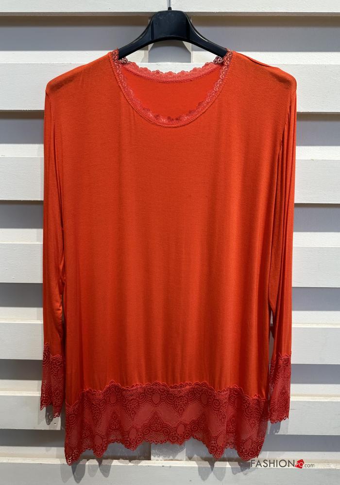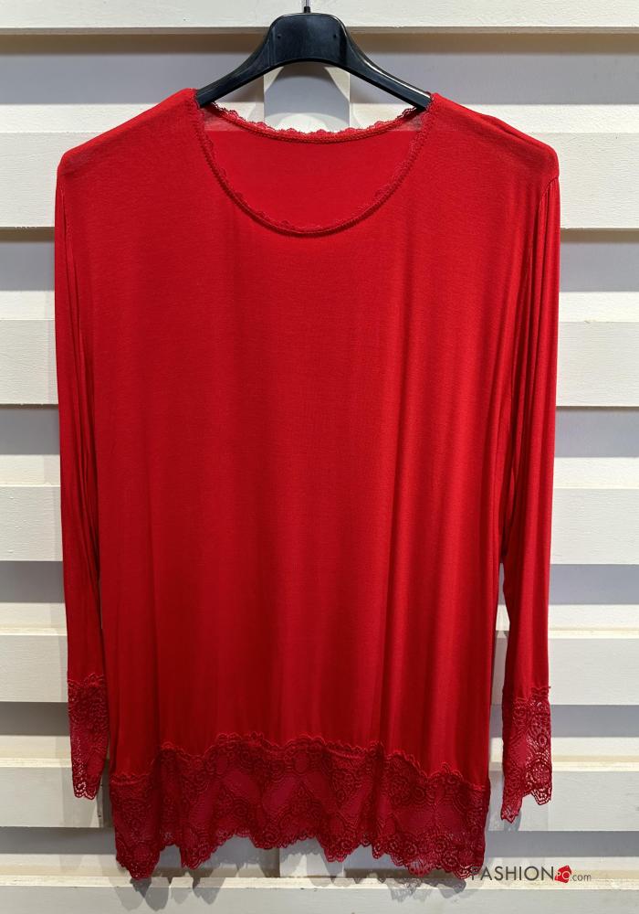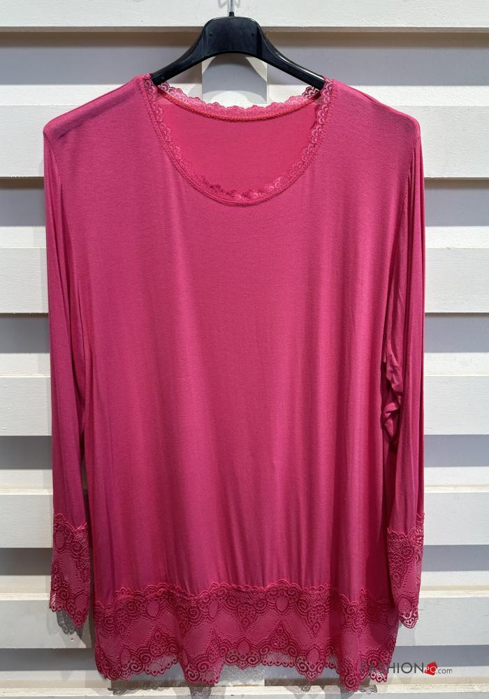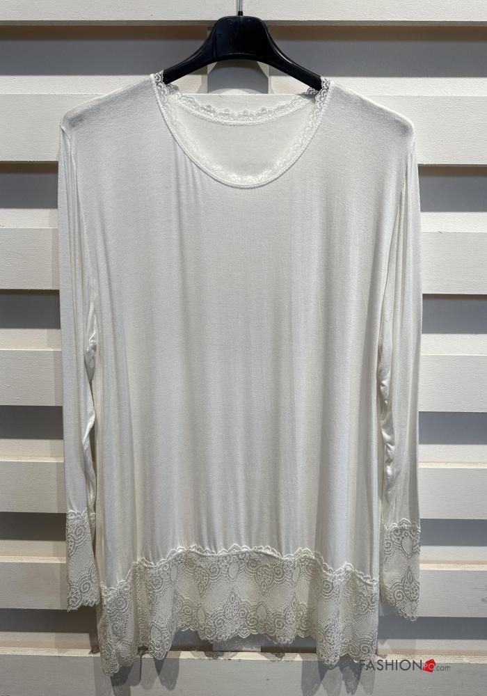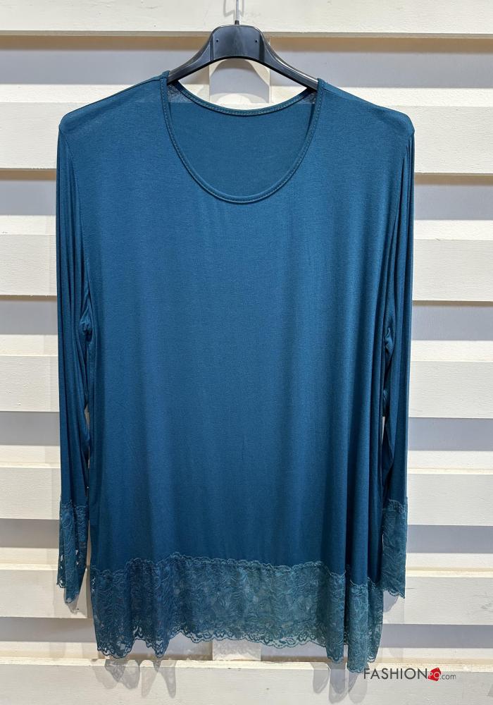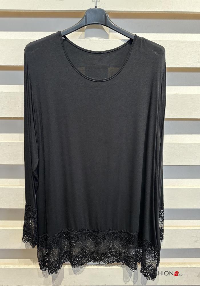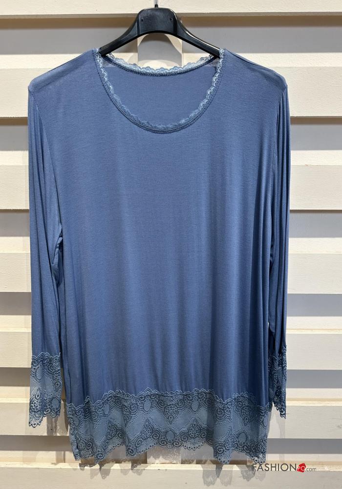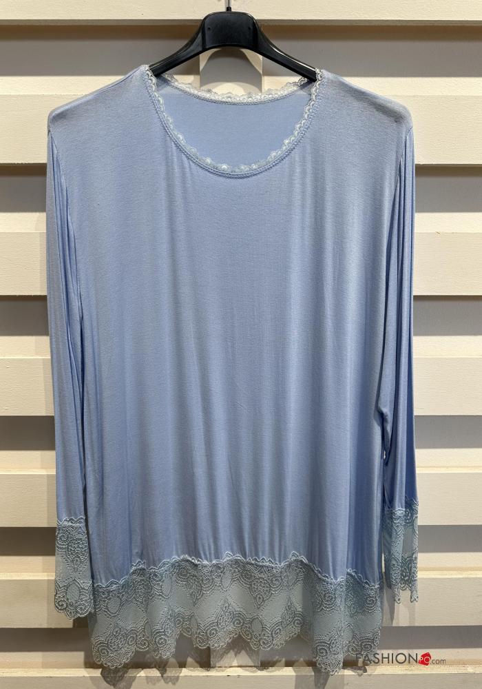 Blusa cuello redondo extra grande encaje manga larga