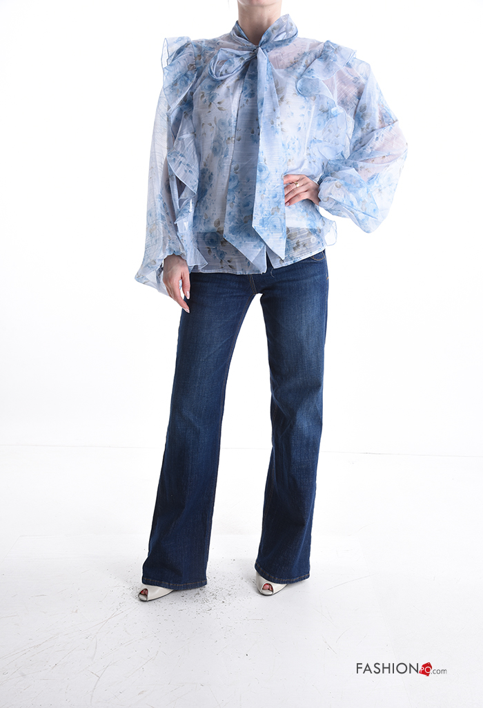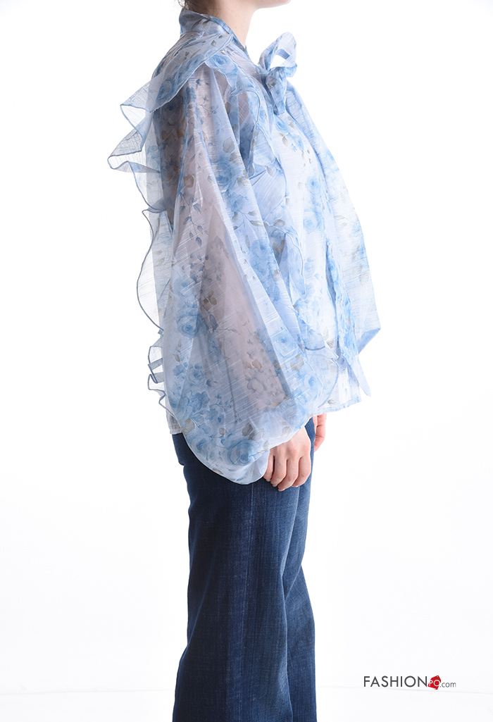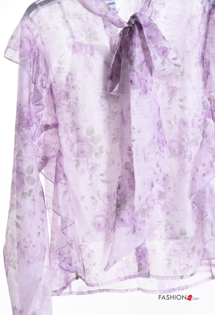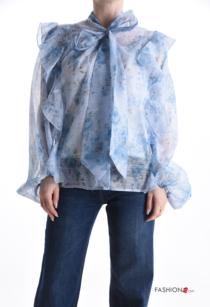 Home > Ropa > Camisas y Blusas > Blusa de Algodón manga larga Estampado Floral con volantes con lazo