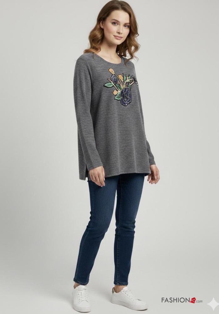 Camiseta de manga larga de Mezcla de Lana cuello redondo Diseño impreso