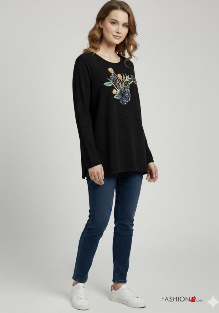 Home > Ropa > Camisas y Blusas > Camiseta de manga larga de Mezcla de Lana cuello redondo Diseño impreso