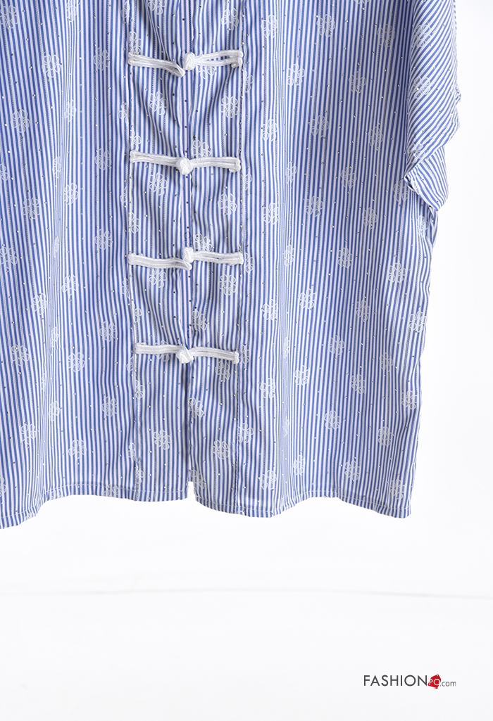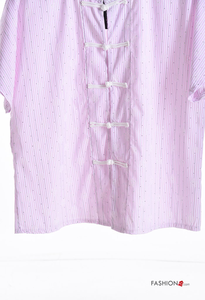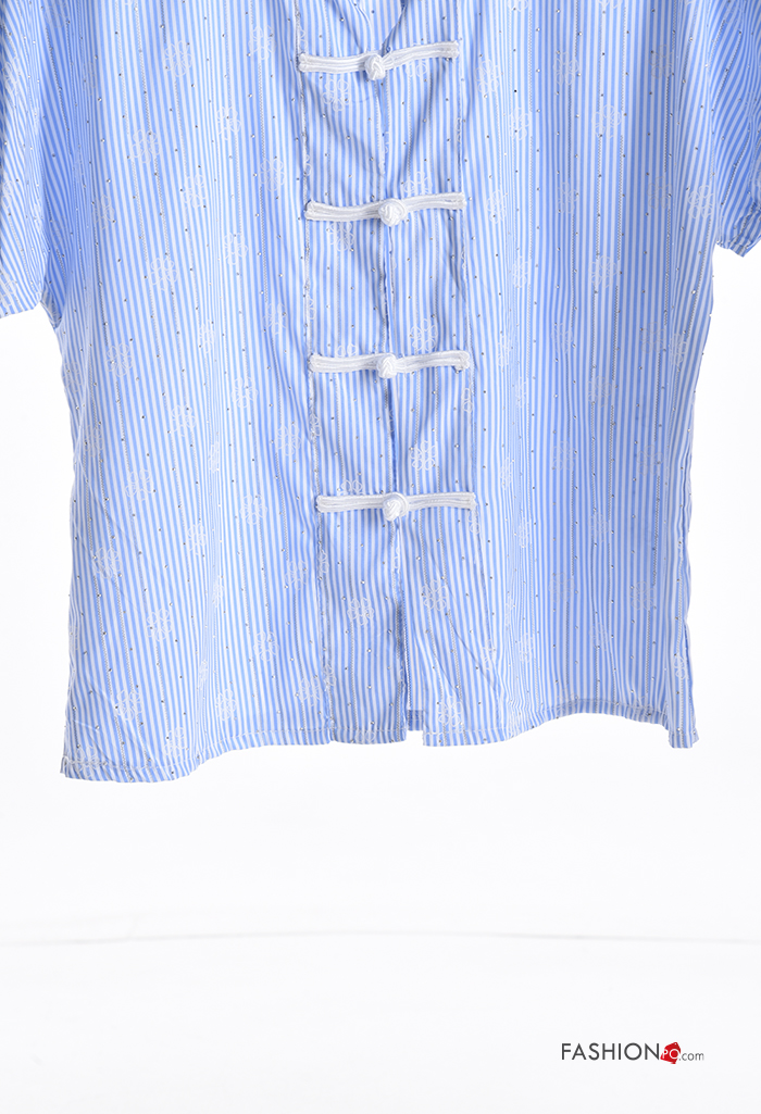 Camisa manga corta a rayas con botones con brillantes