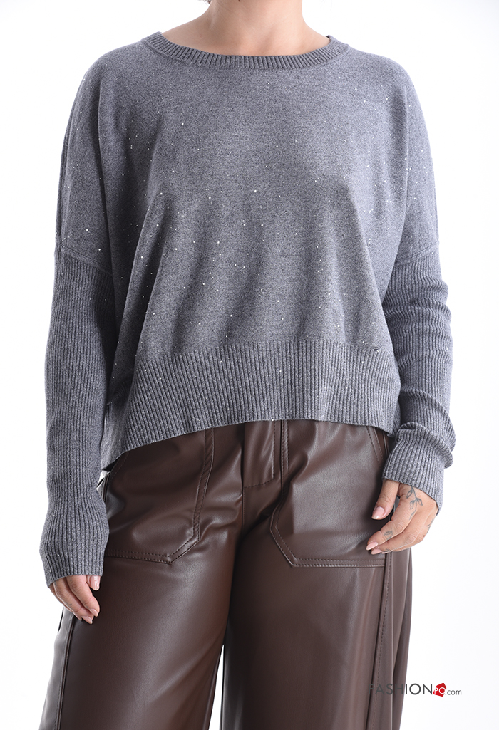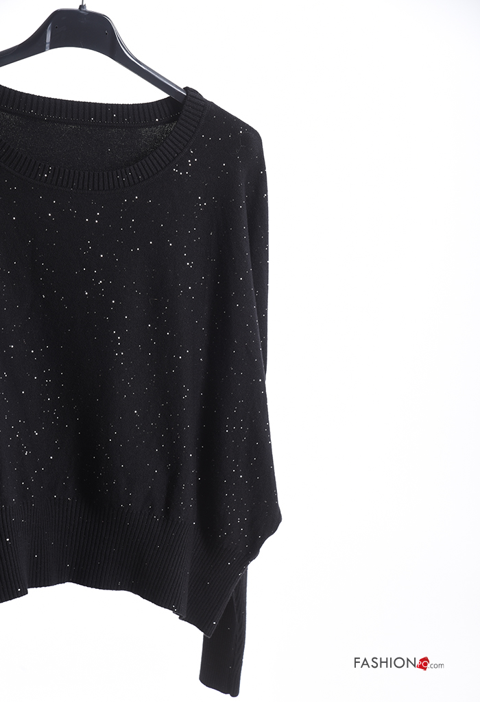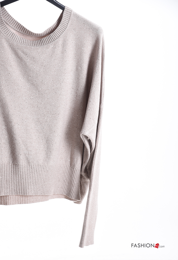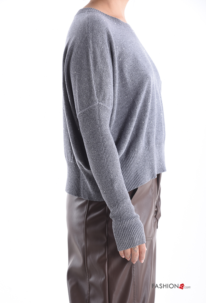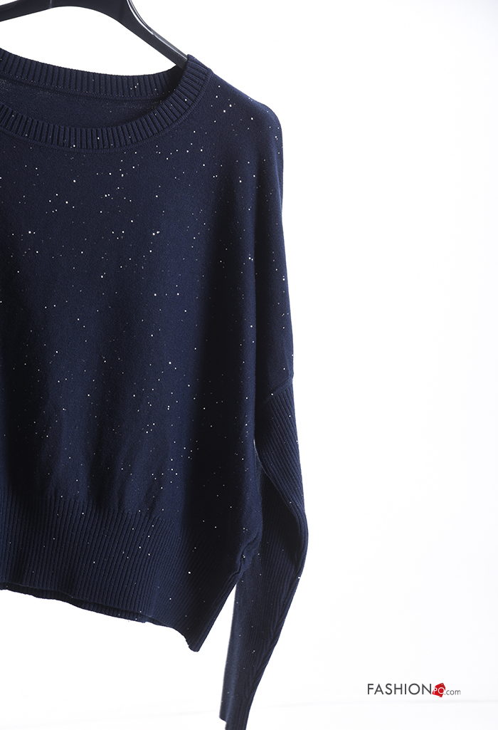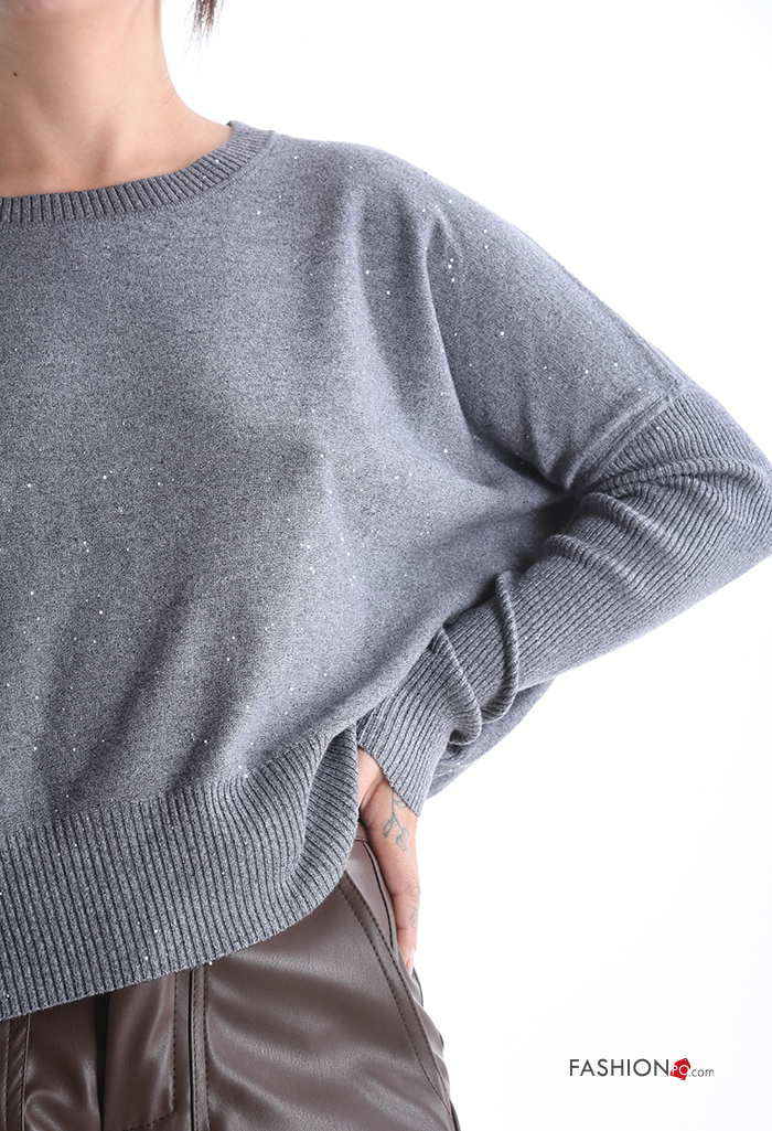 Jersey canalé cuello redondo con lentejuelas