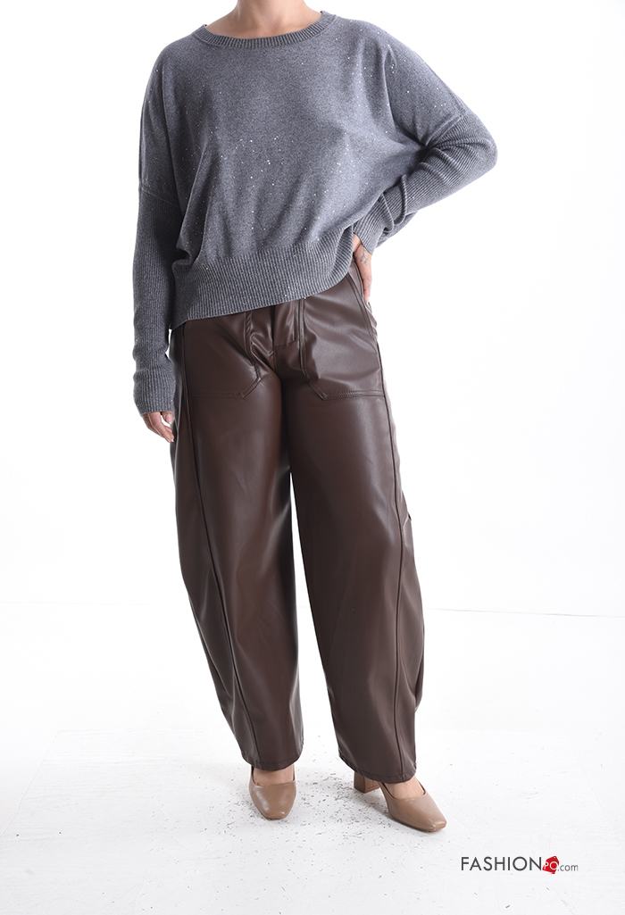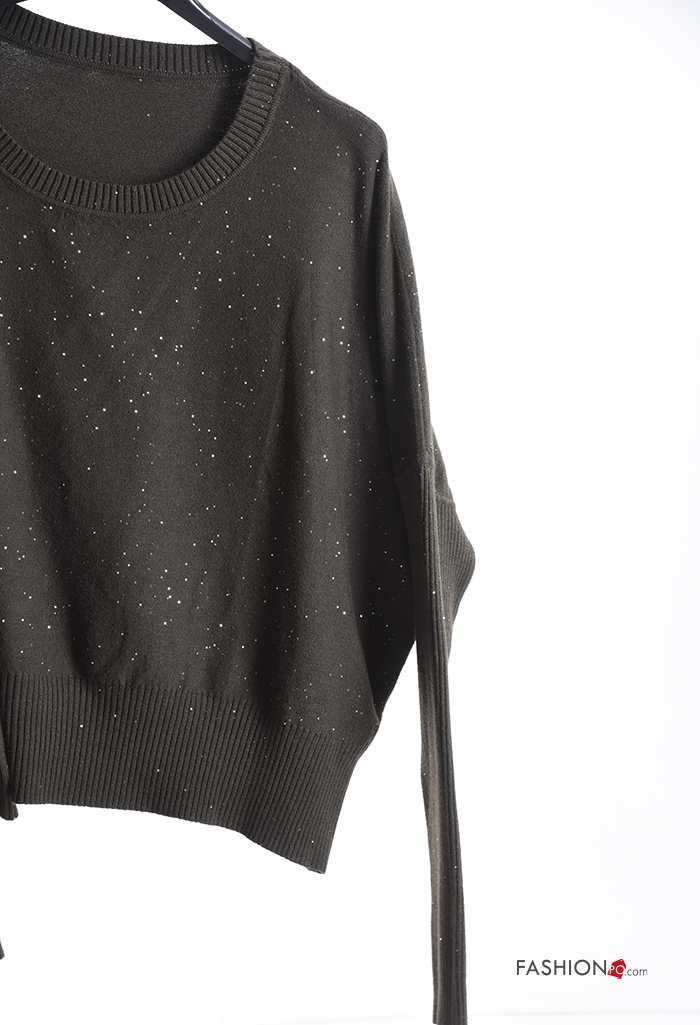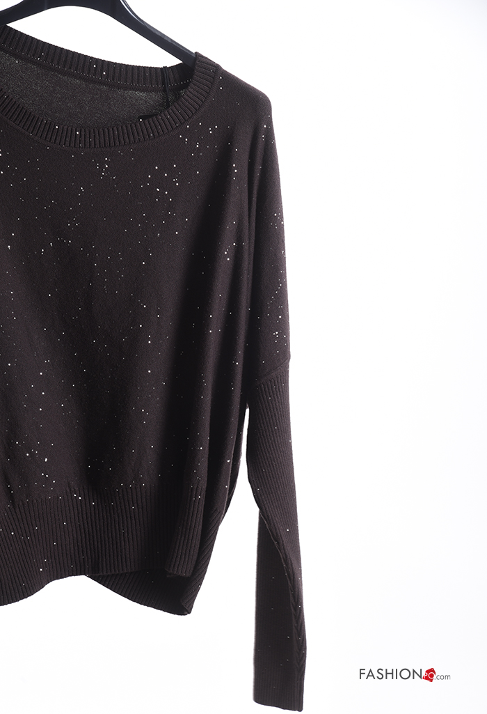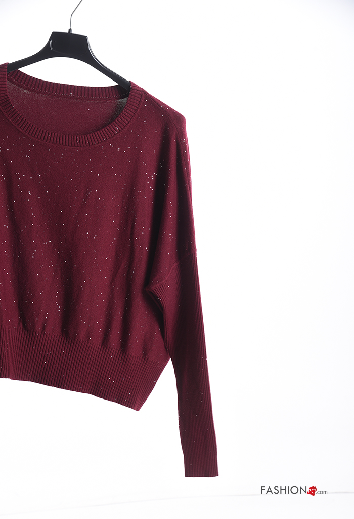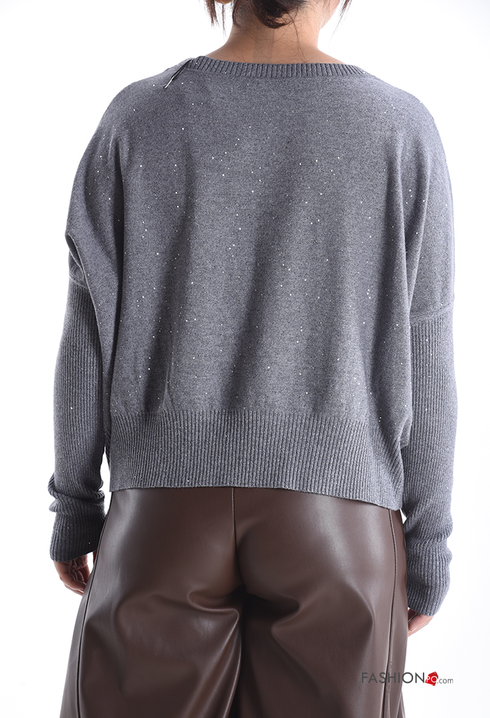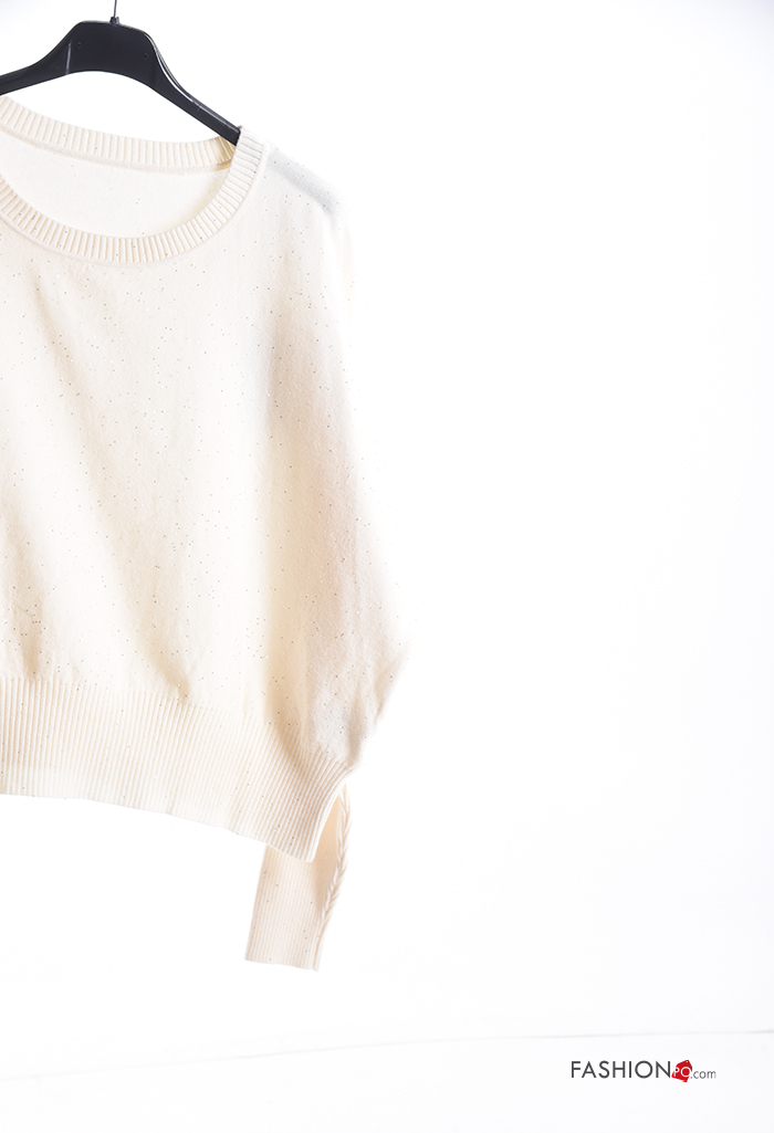Jersey canalé cuello redondo con lentejuelas