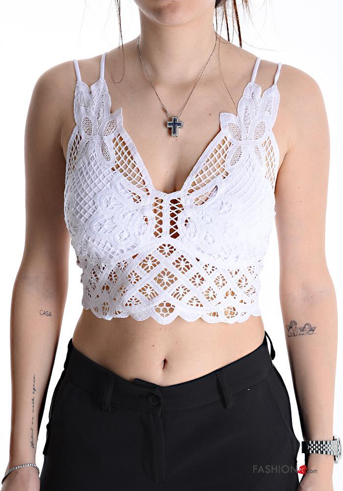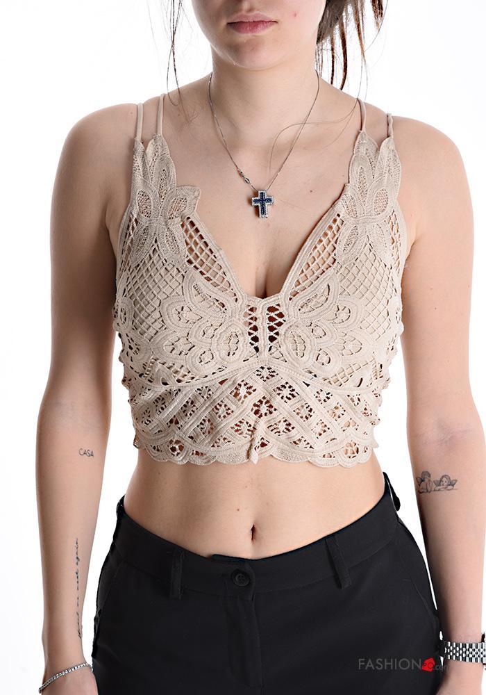 Top corto encaje espalda descubierta con copas escote profundo