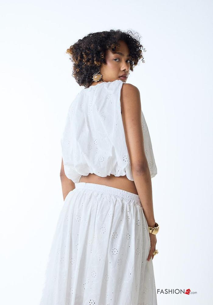 Home > Ropa > Camisetas y tops > Top de Algodón sin mangas cuello redondo bordado inglés