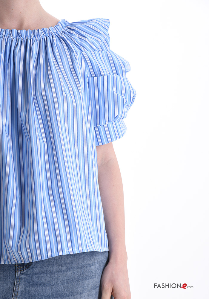 Home > Vêtements > Chemises & Blouses > Blouse en Coton manches courtes Imprimé à rayures
