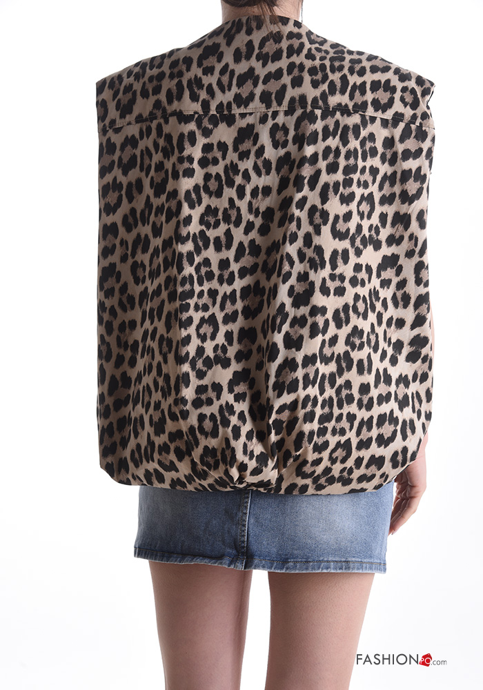 Veste en Coton sans manches Imprimé animalier avec poches avec fermeture éclair