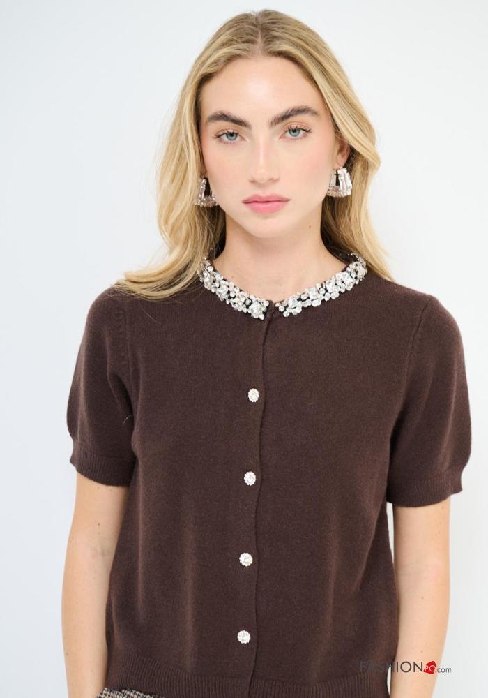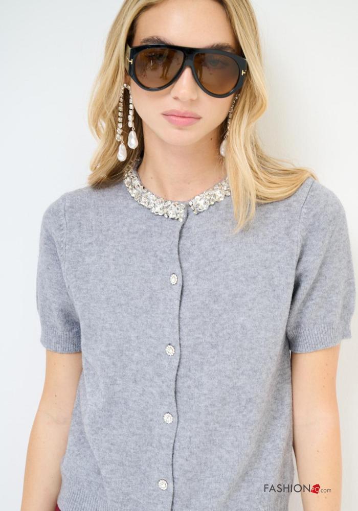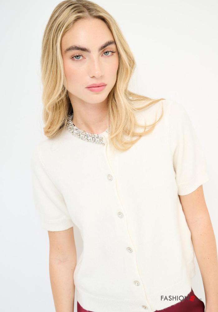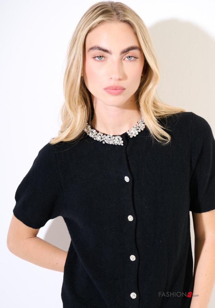 Home > Vêtements > Pulls & Gilets > Gilet manches courtes col rond à boutons avec strass
