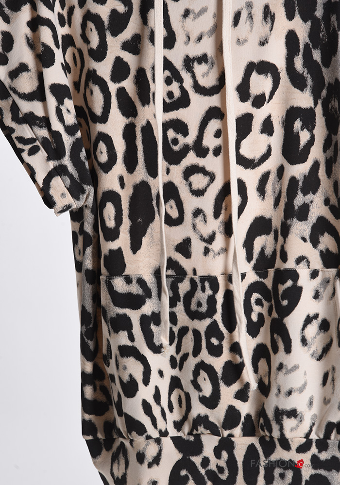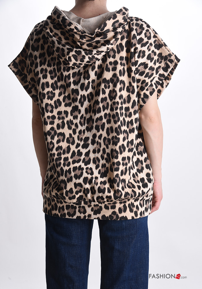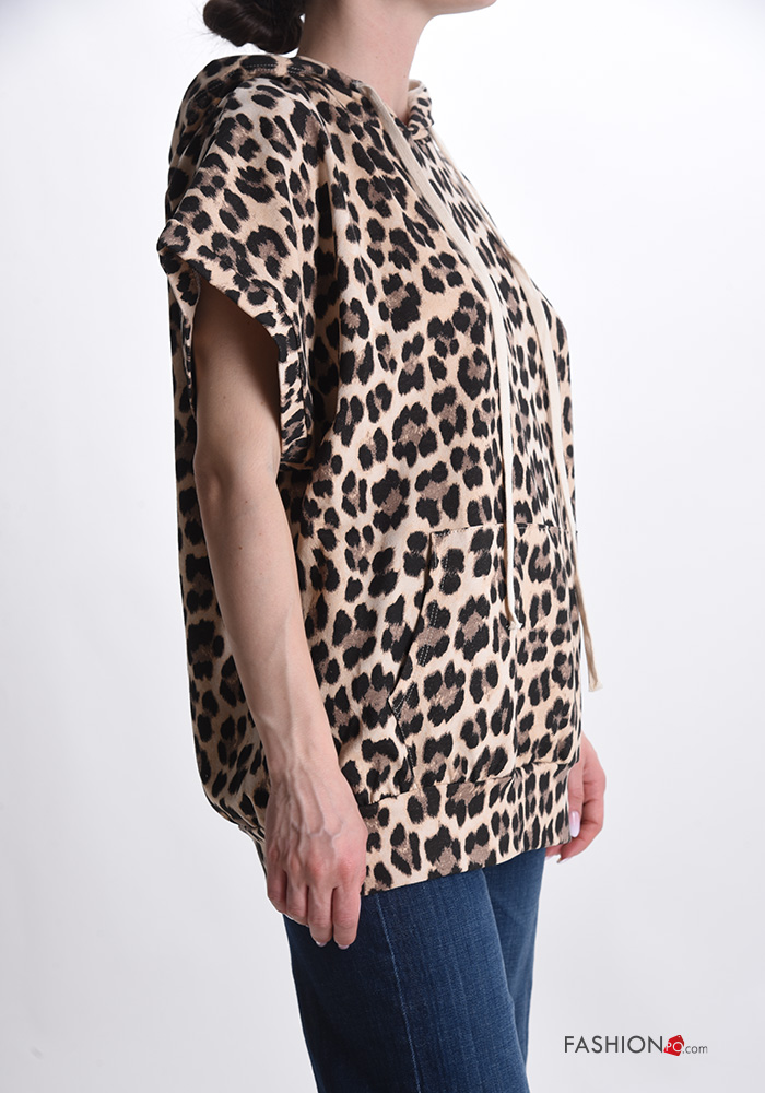 Home > Abbigliamento > Abbigliamento Sportivo > Felpa in Cotone maniche corte Fantasia animalier con tasche con cappuccio