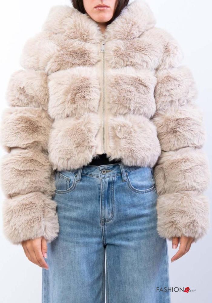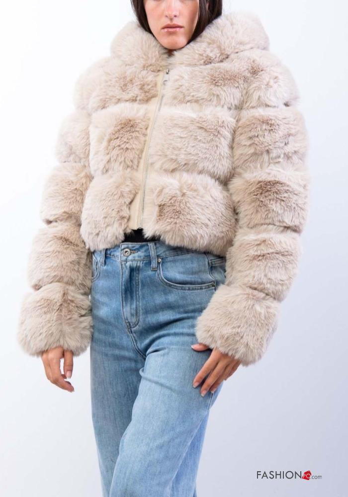 Home > Abbigliamento > Cappotti e Giacche > Cappotto corto pelliccia sintetica maniche lunghe con zip con cappuccio