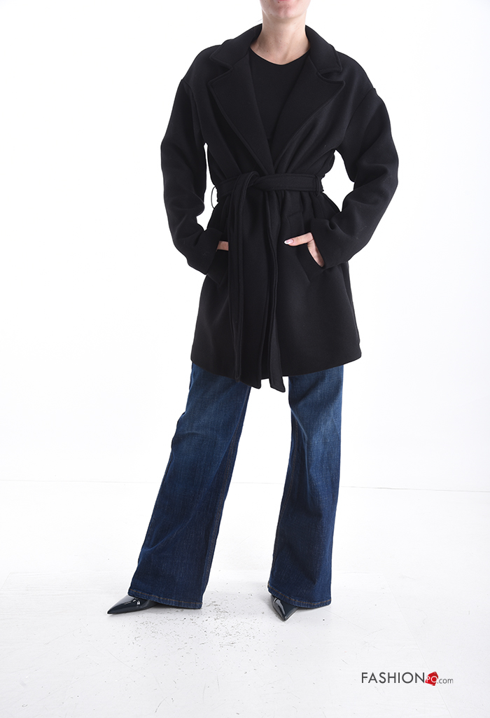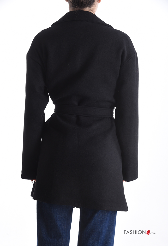 Cappotto in Misto Lana maniche lunghe con fodera con cintura con bottoni