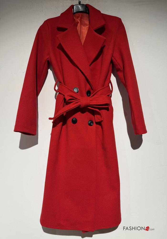 Cappotto doppio petto maniche lunghe con fodera con tasche con cintura con bottoni