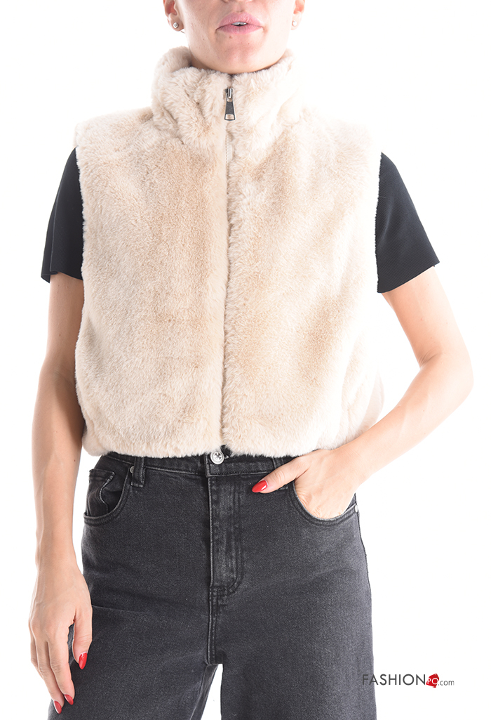 Home > Abbigliamento > Cappotti e Giacche > Smanicato pelliccia sintetica vita alta con zip con fodera