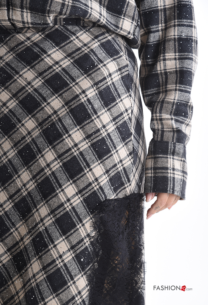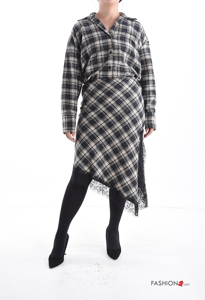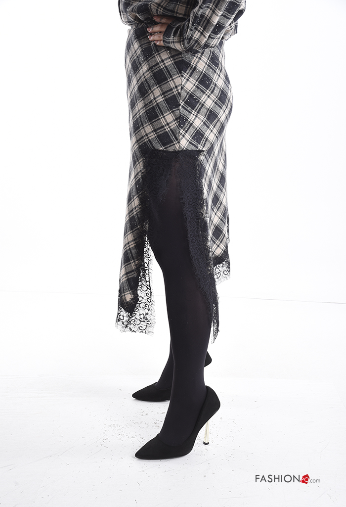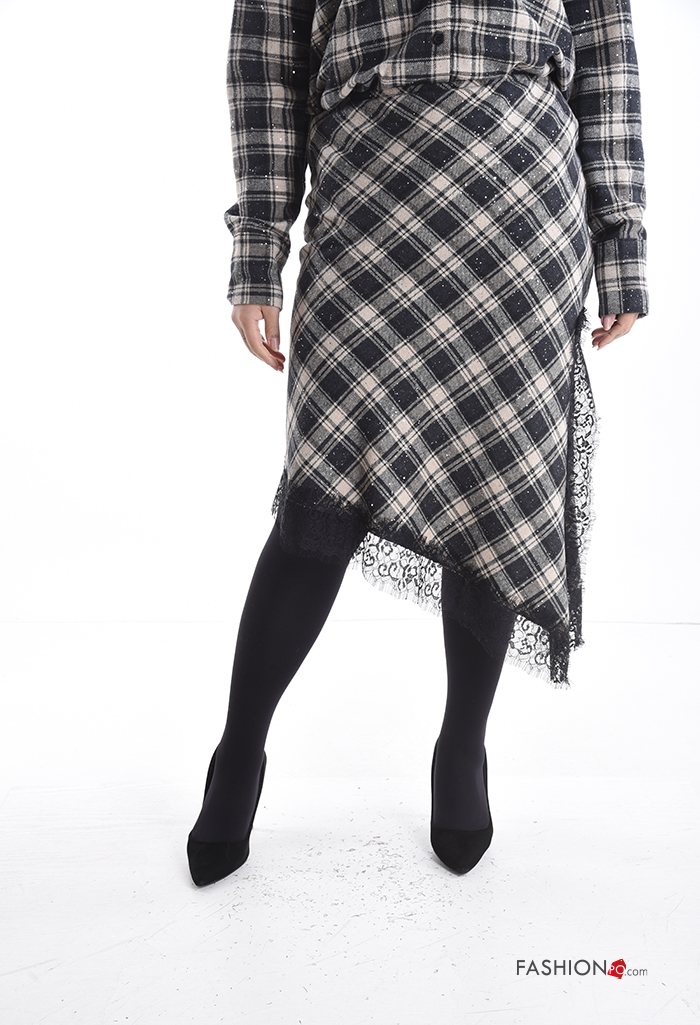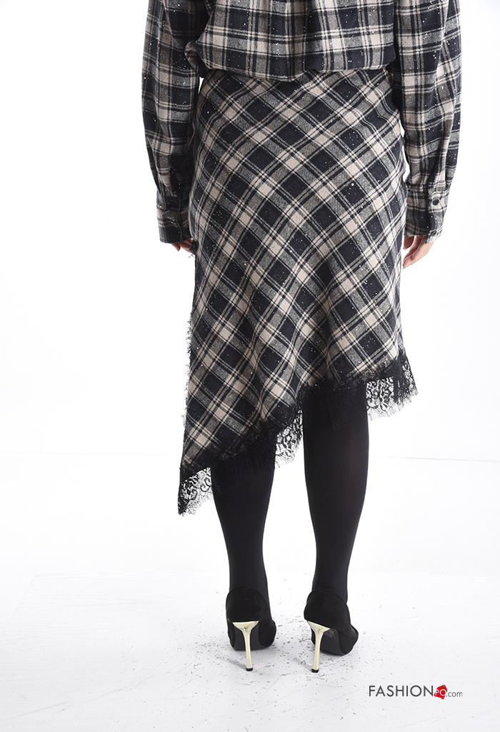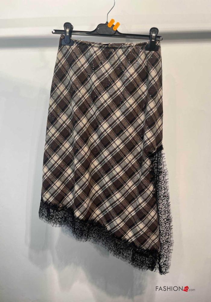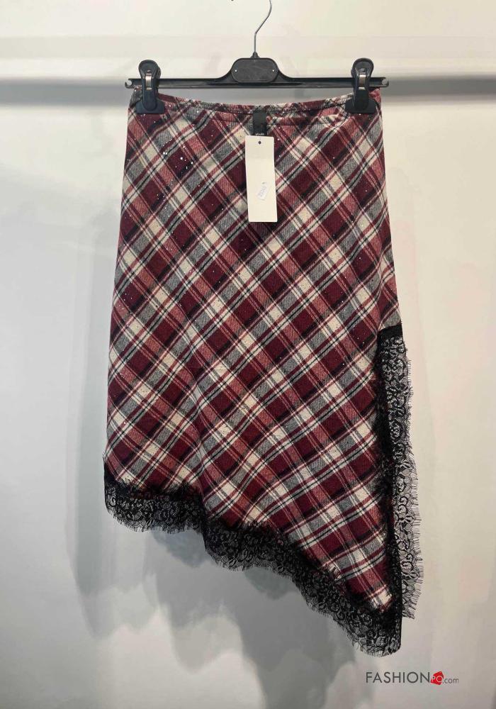 Home > Abbigliamento > Gonne > Gonna in Cotone pizzo asimmetrico Fantasia tartan con elastico con spacco