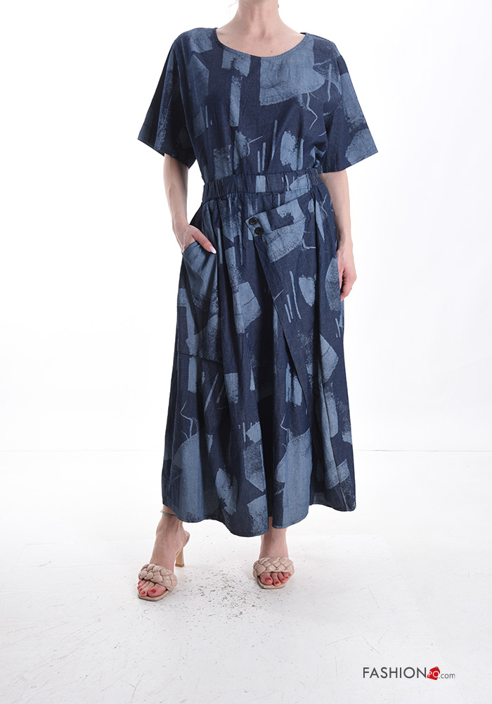 Home > Abbigliamento > Gonne > Gonna in Cotone denim lungo Fantasia astratta con elastico