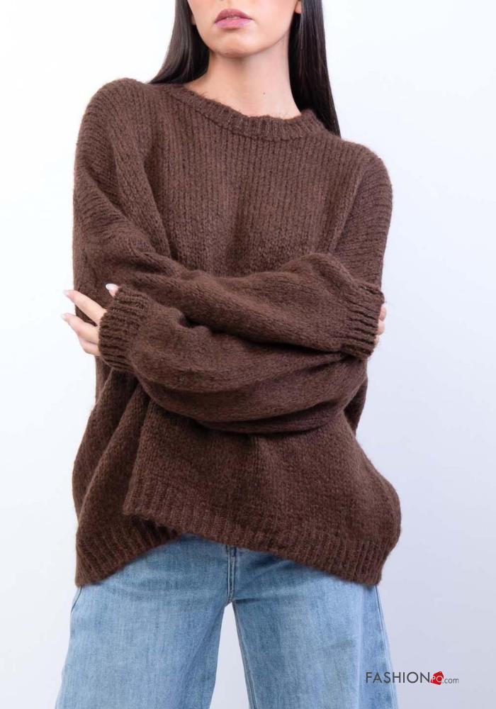 Maglione in Misto Lana girocollo oversize maniche lunghe