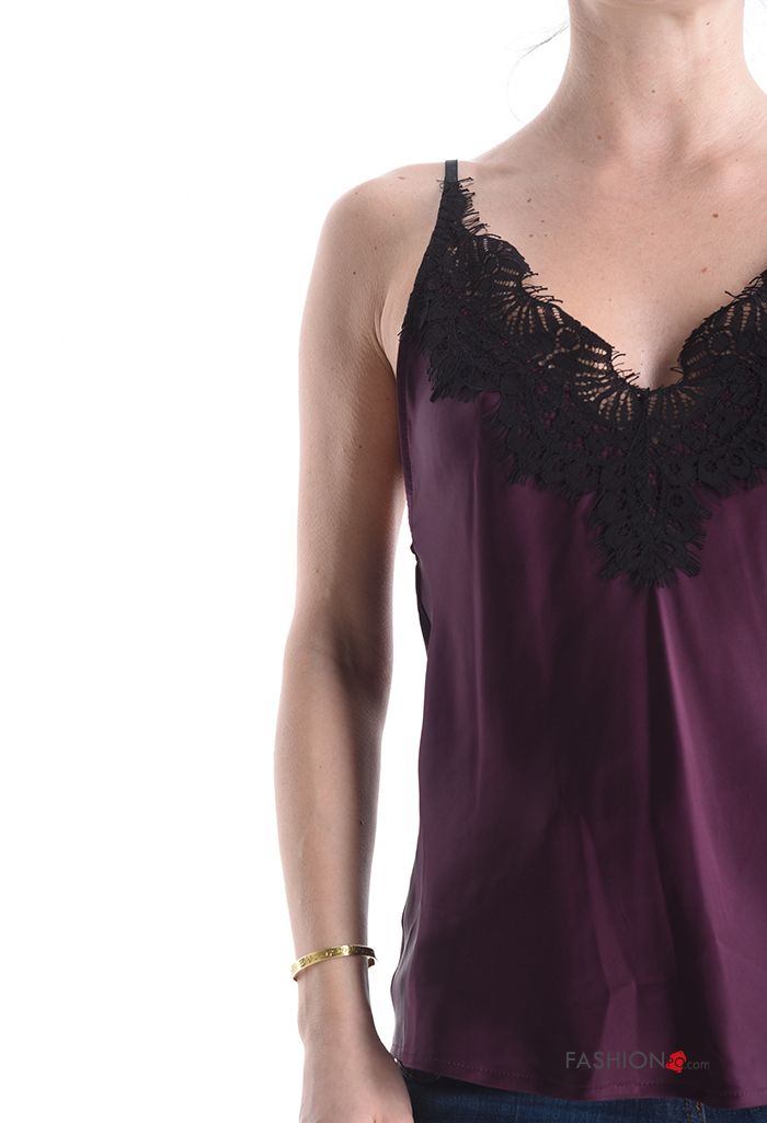 Top scollato sulla schiena senza maniche raso pizzo regolabile
