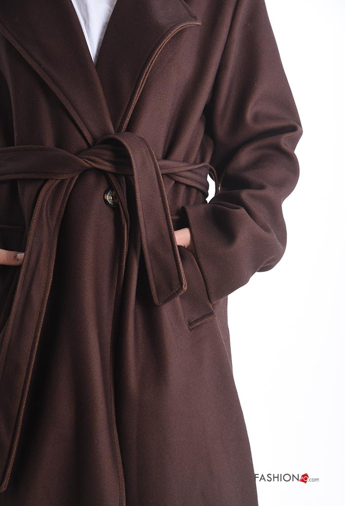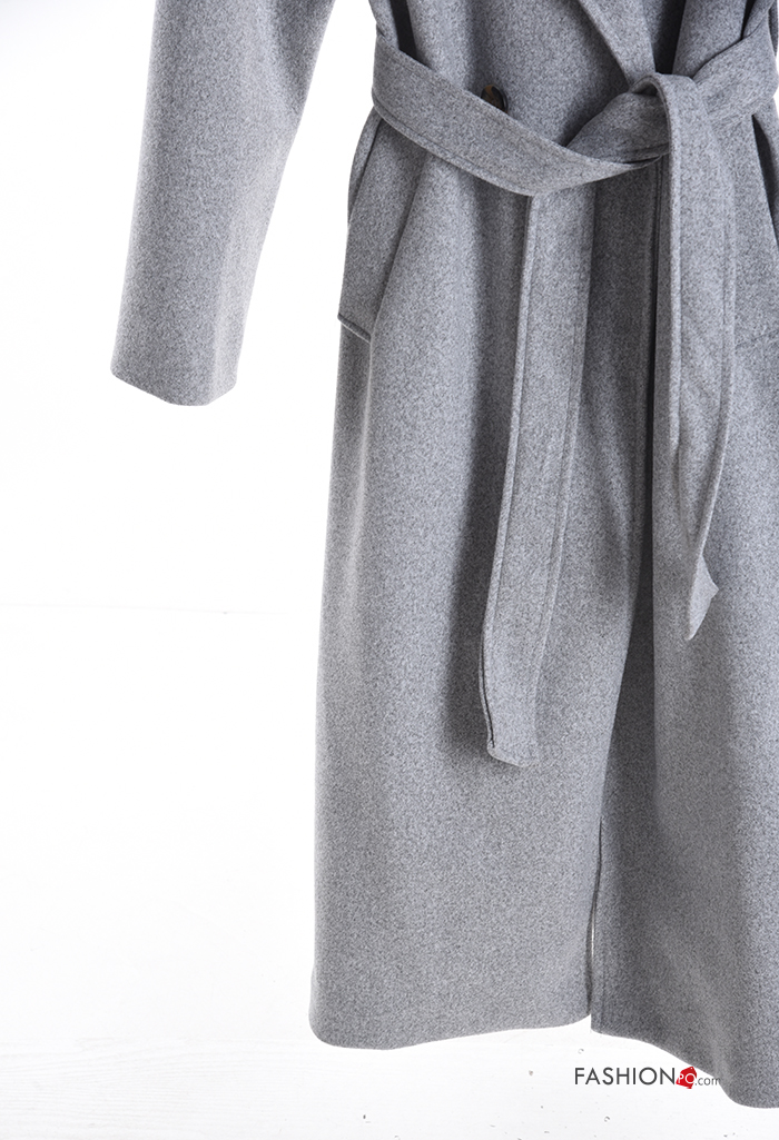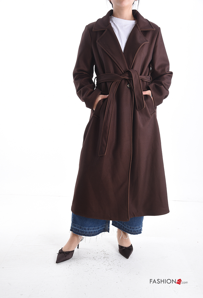 Home > Roupa > Blusões & Casacos > Casaco abotoamento duplo longo com cinto com bolsos