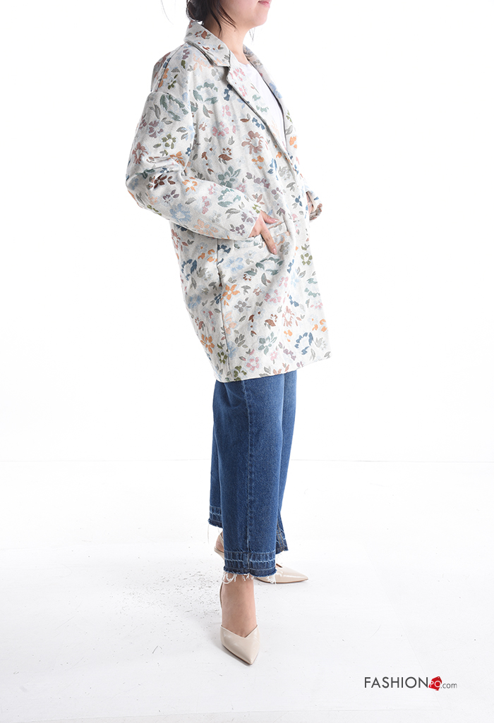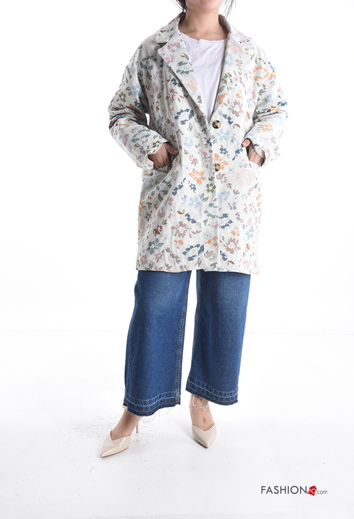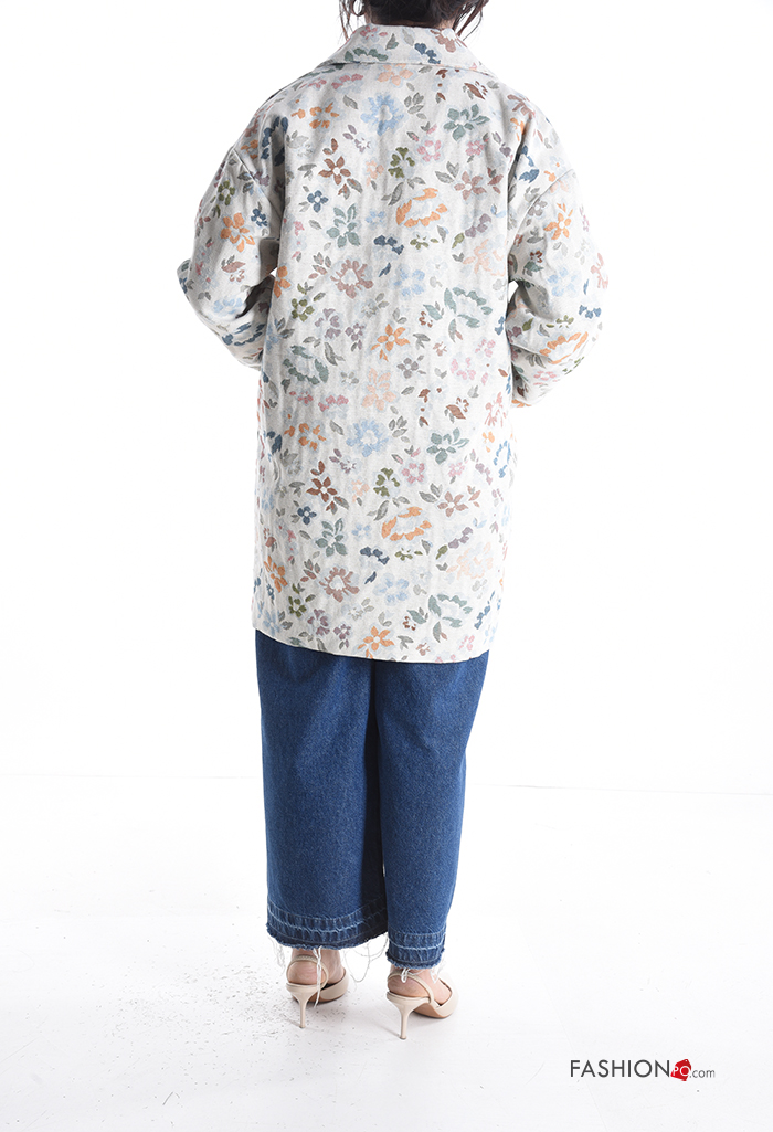 Casaco em Algodão manga comprida Floral com botões com bolsos