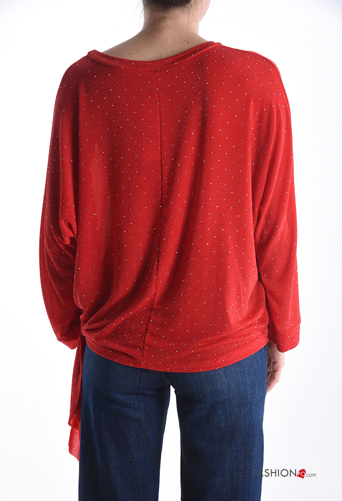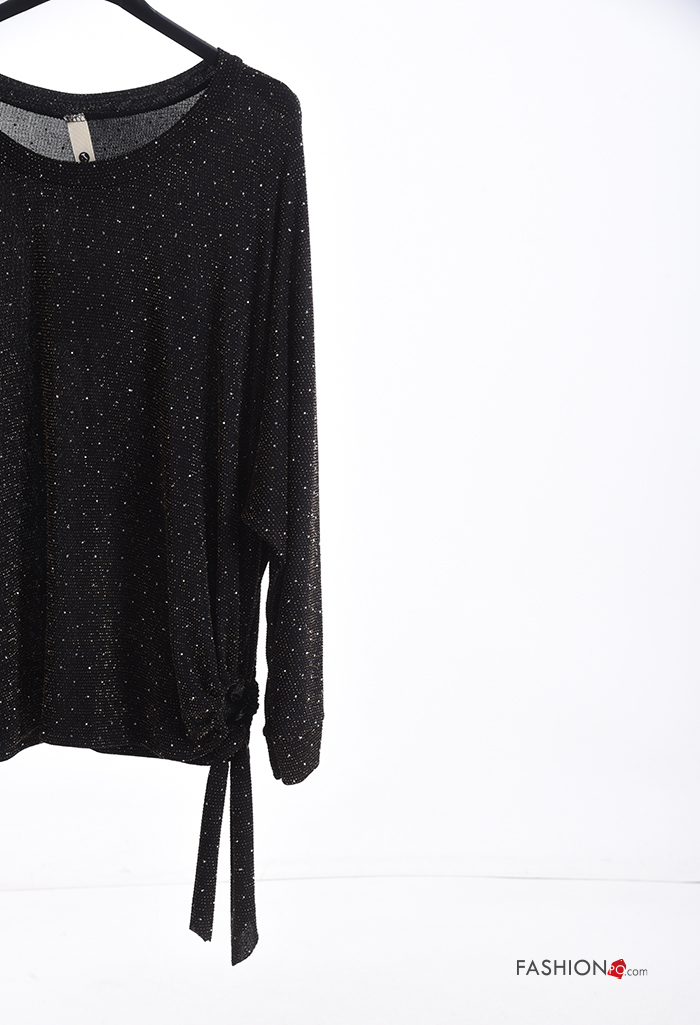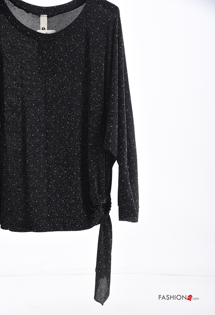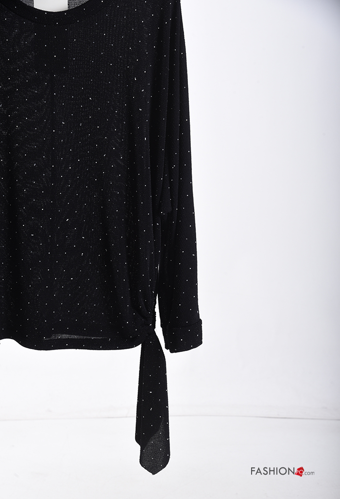 Home > Roupa > Camisas & Blusas > Blusa manga comprida gola redonda com strass com nó