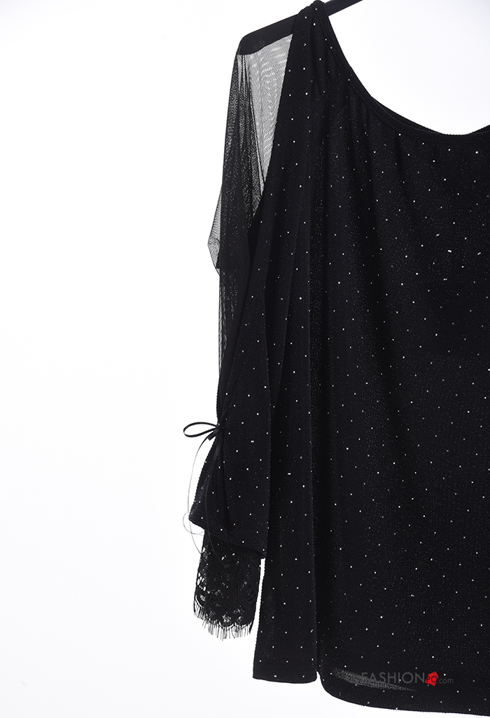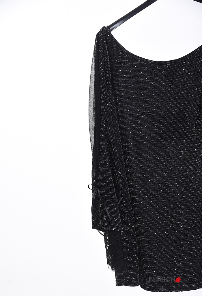 Home > Roupa > Camisas & Blusas > Blusa renda manga comprida gola redonda com laço com strass