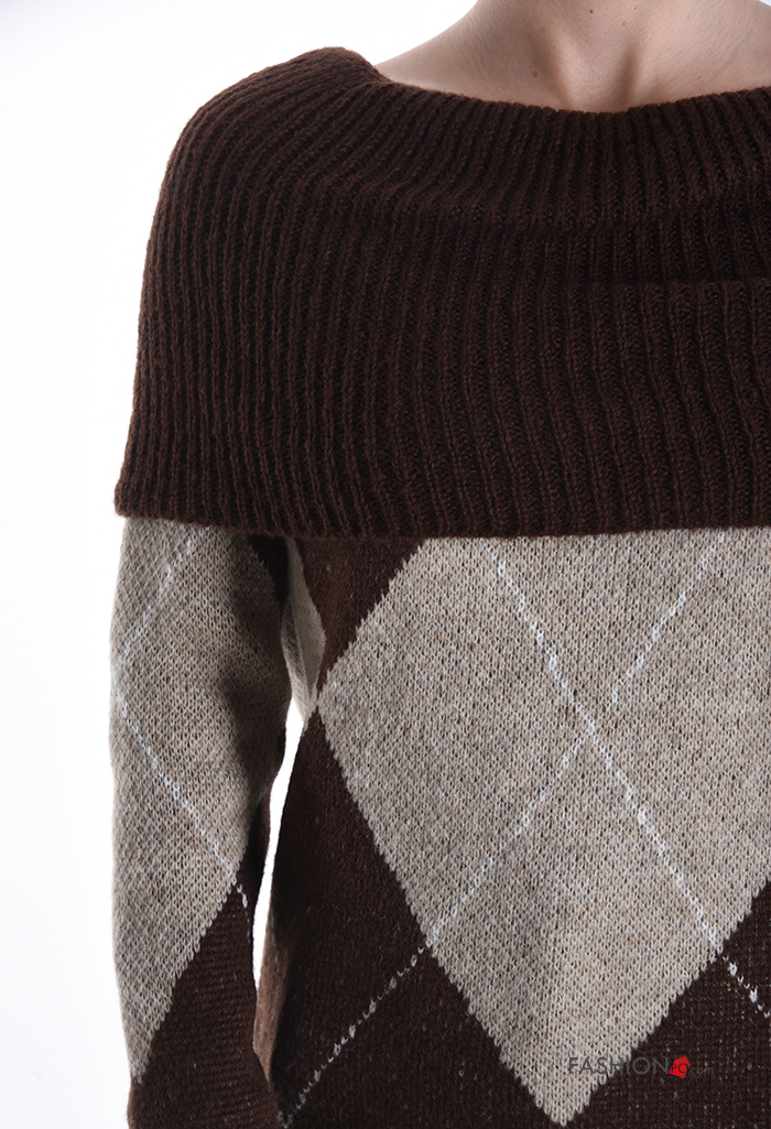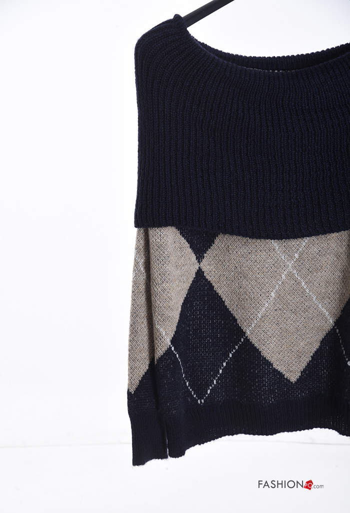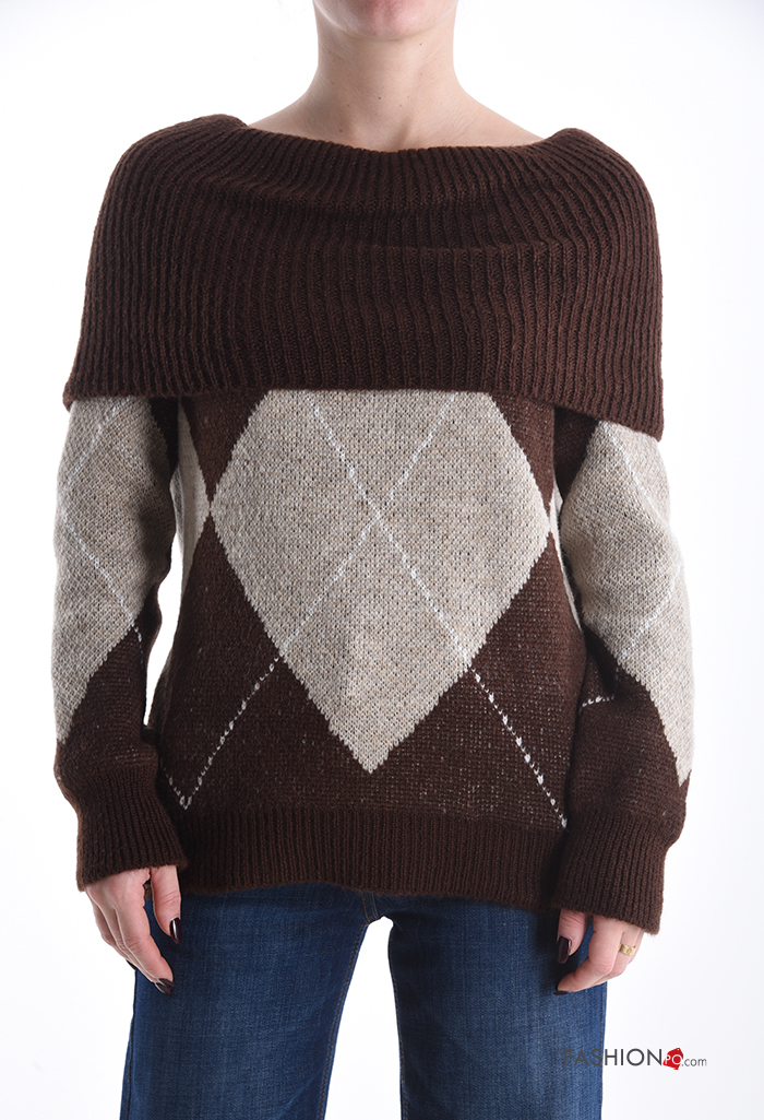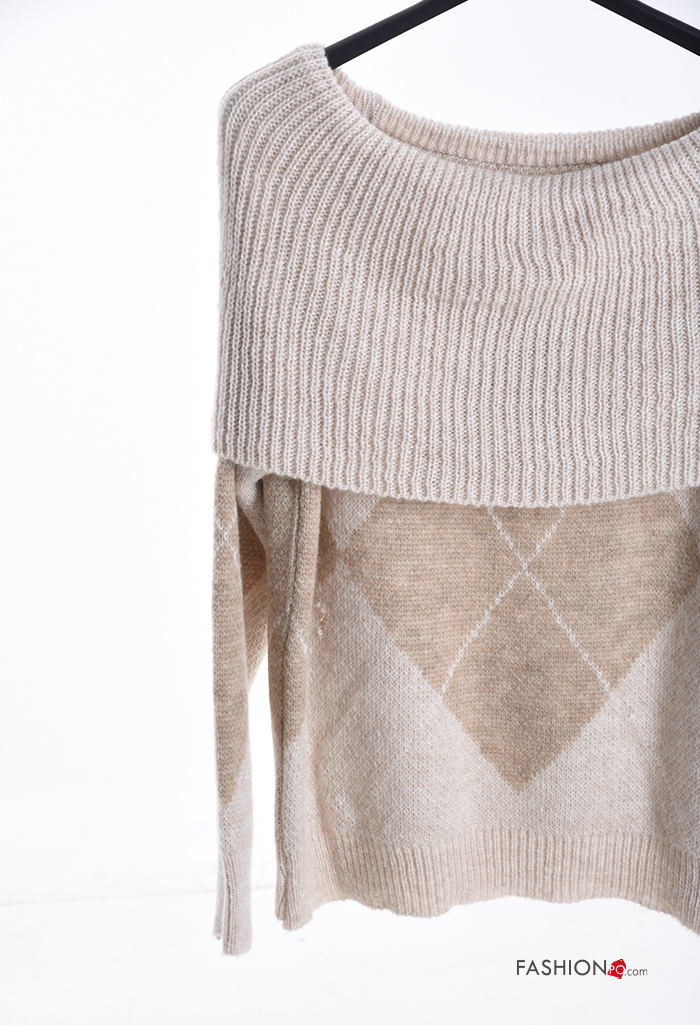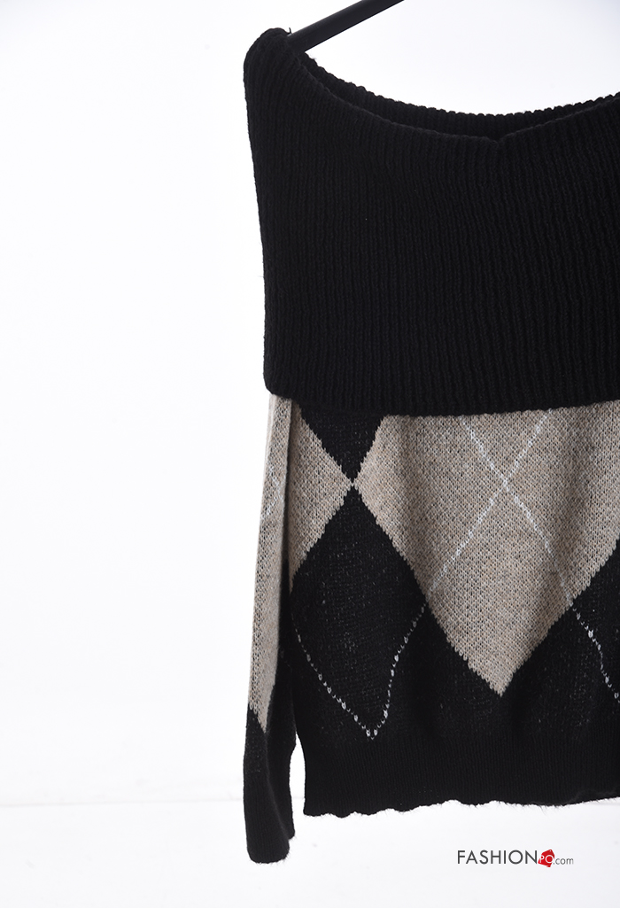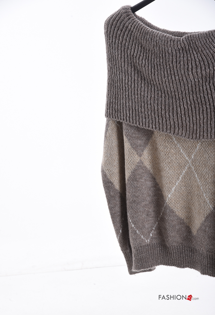 Home > Roupa > Cardigãs & Camisolas > Camisola em Mohair manga comprida Padrão Geométrico decote ombro a ombro