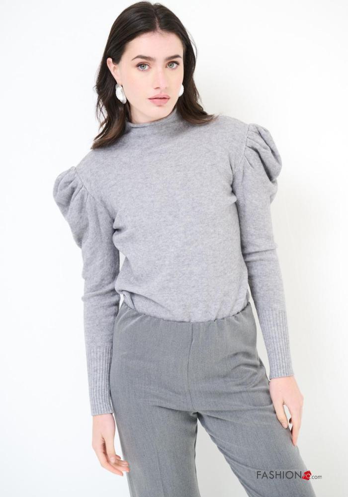 Camisola manga balão manga comprida com gola subida
