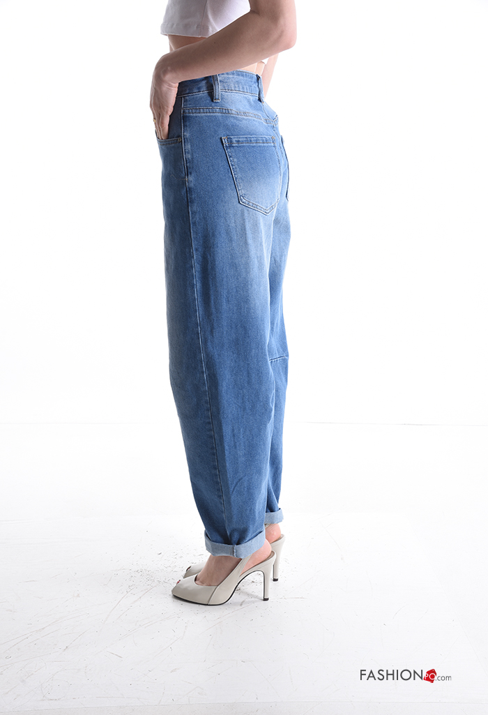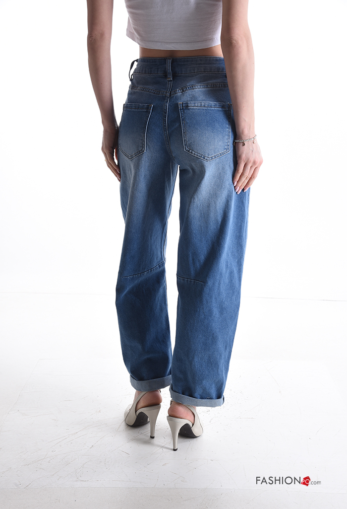 Calças de ganga em Algodão denim com bolsos com botões com fecho