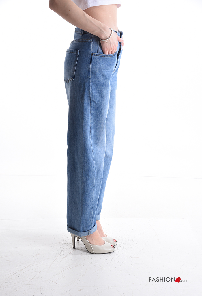 Calças de ganga em Algodão denim com bolsos com botões com fecho