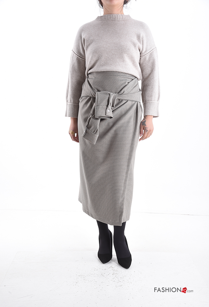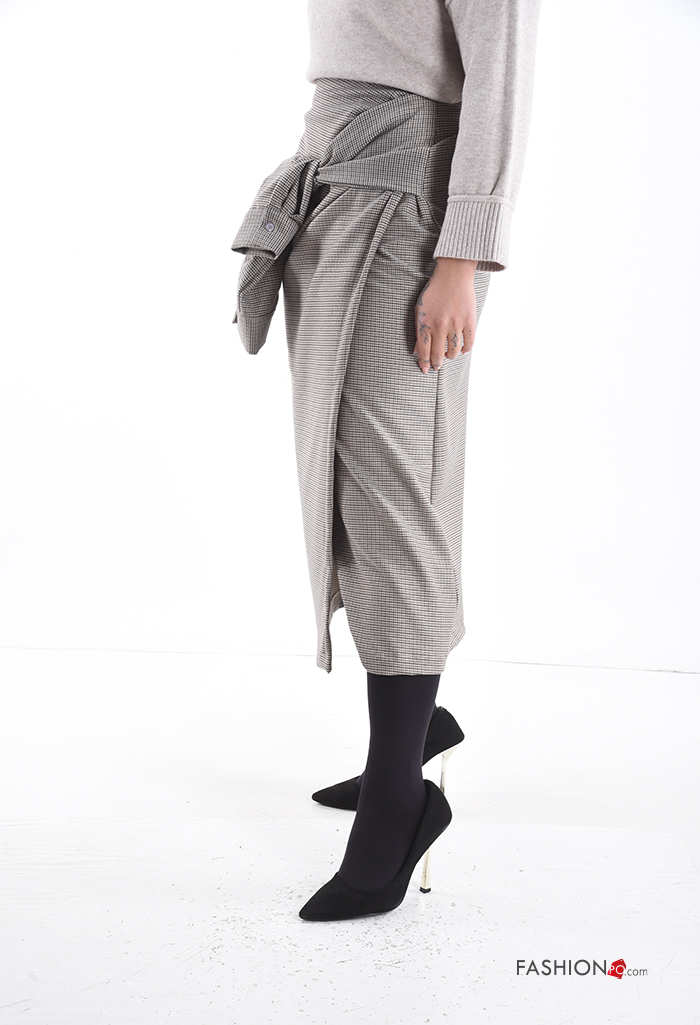 A modelo da foto principal veste um tamanho 38 e tem 160 cm de altura.