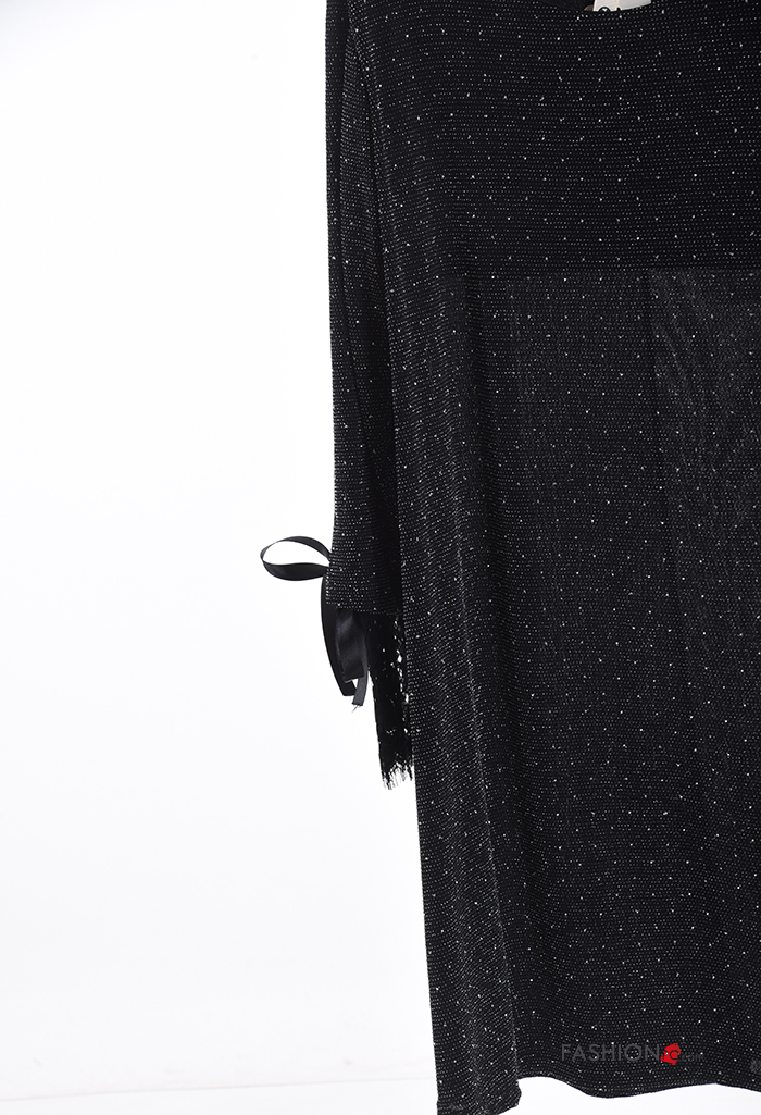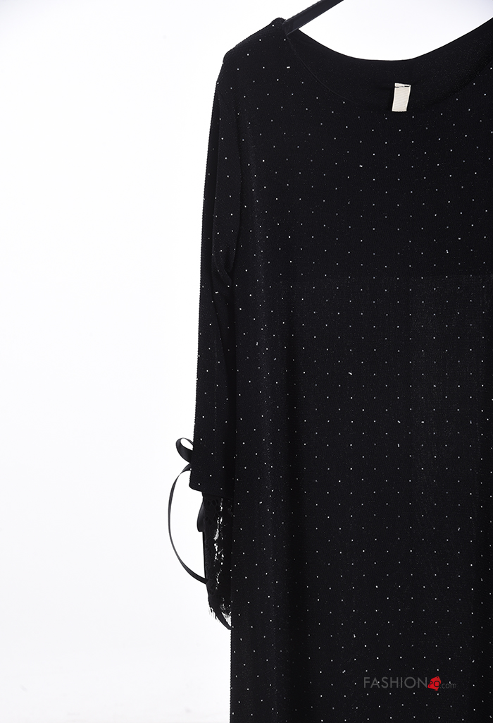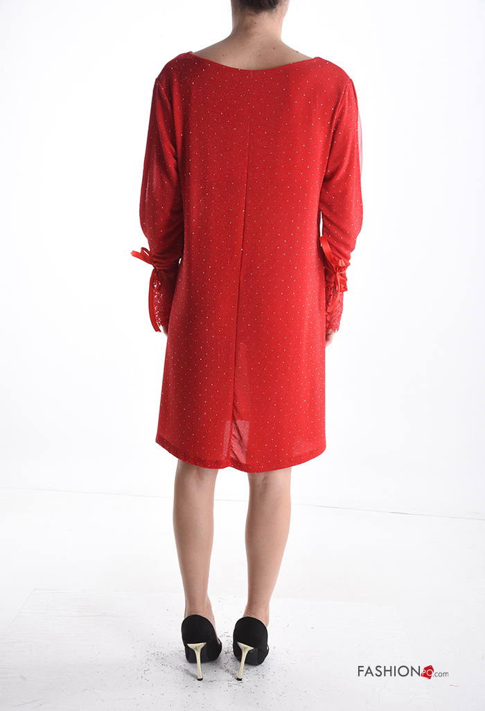 Vestido renda gola redonda com laço com strass