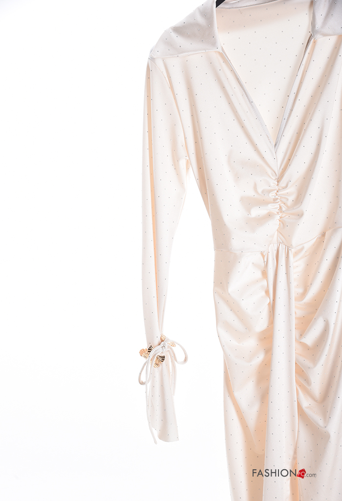 Vestido brilhante manga com folhos com gola gola V com nó com fenda