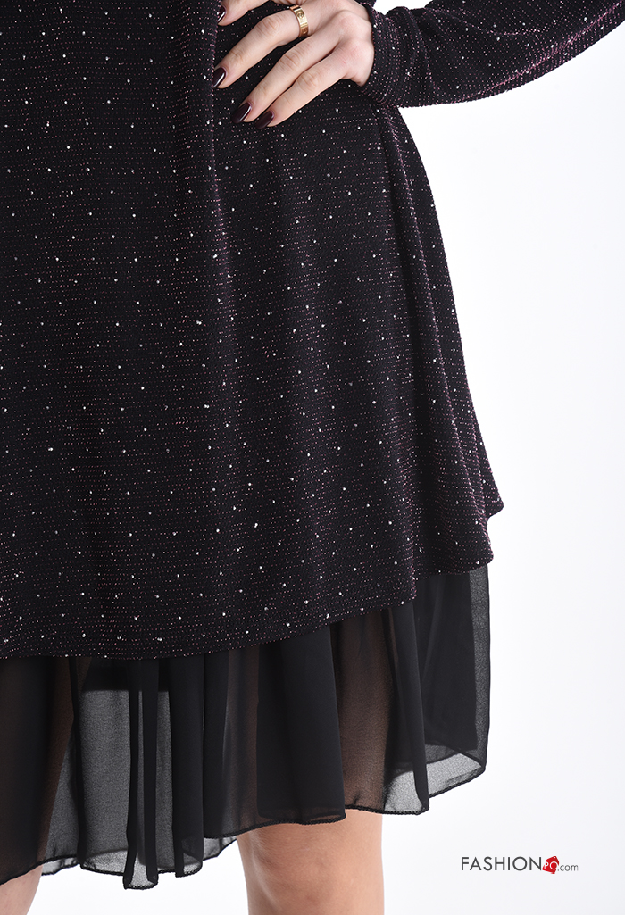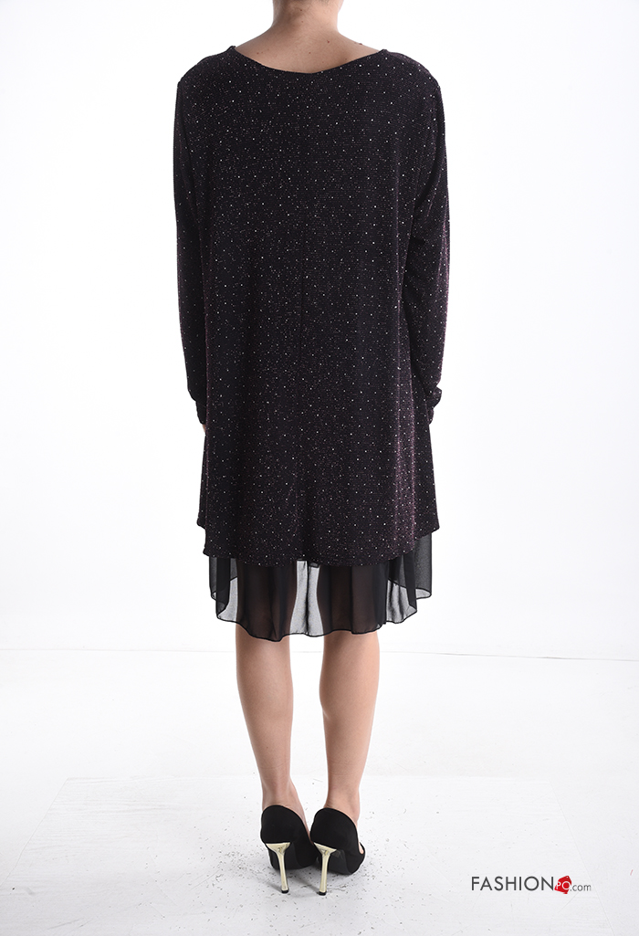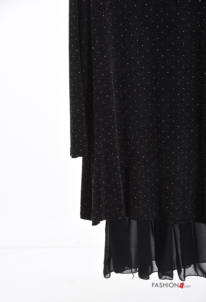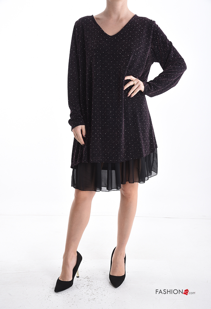 Home > Roupa > Vestidos > Vestido manga comprida chiffon gola V com strass com forro