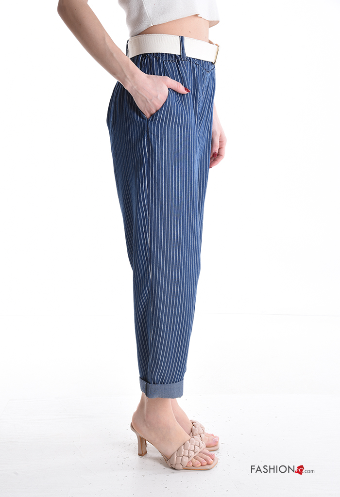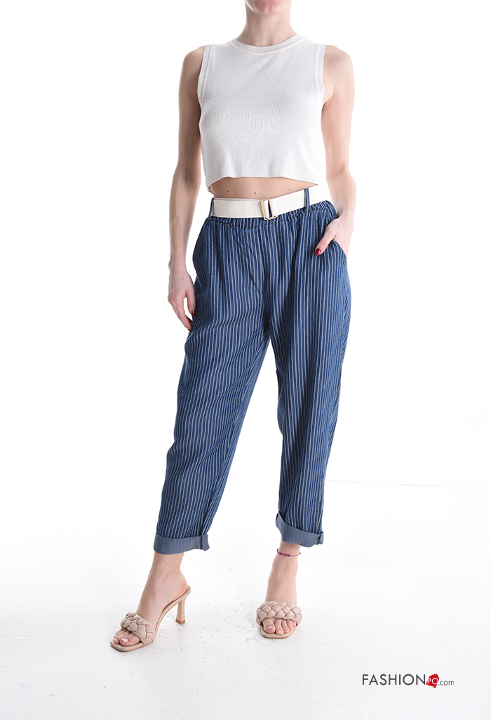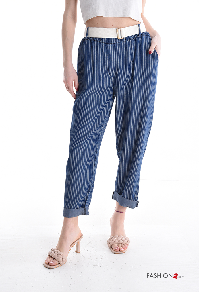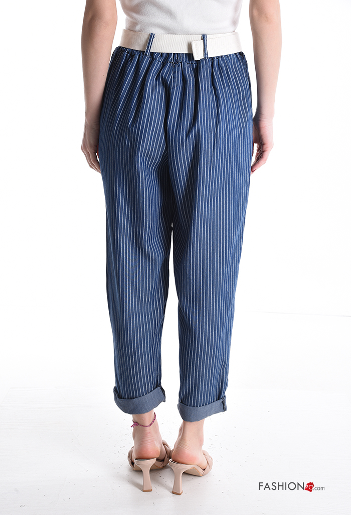 Home > Brands > ANGELA MODA > Streifenmuster Hose mit Gürtel mit gummizug mit Taschen