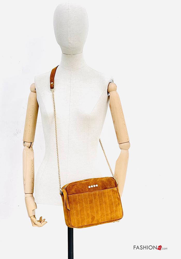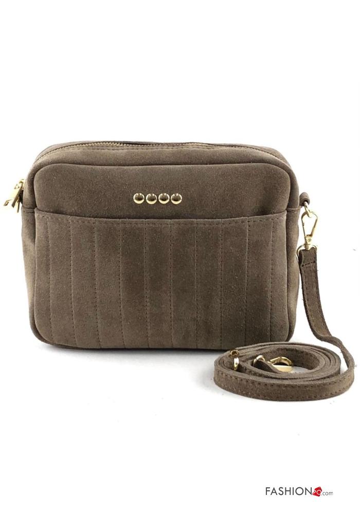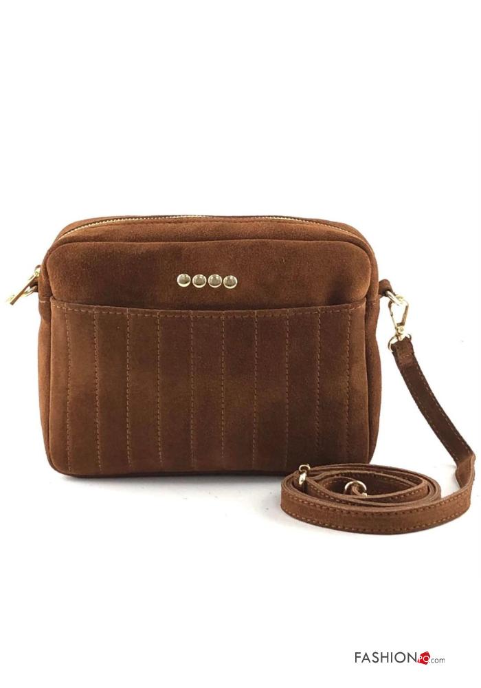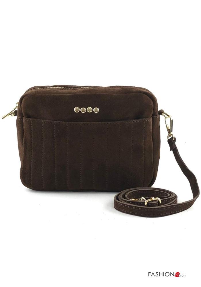 Wildleder Schultertaschen aus Echtes Leder mit Nieten mit Schultergurt