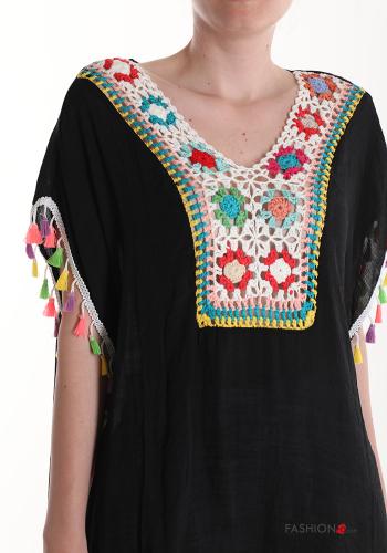 Home > Kleidung > Bademode > kurze ärmel Strandkleid aus Baumwolle mit V-Ausschnitt mit Fransen