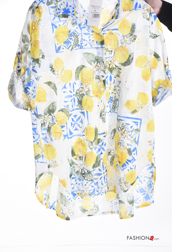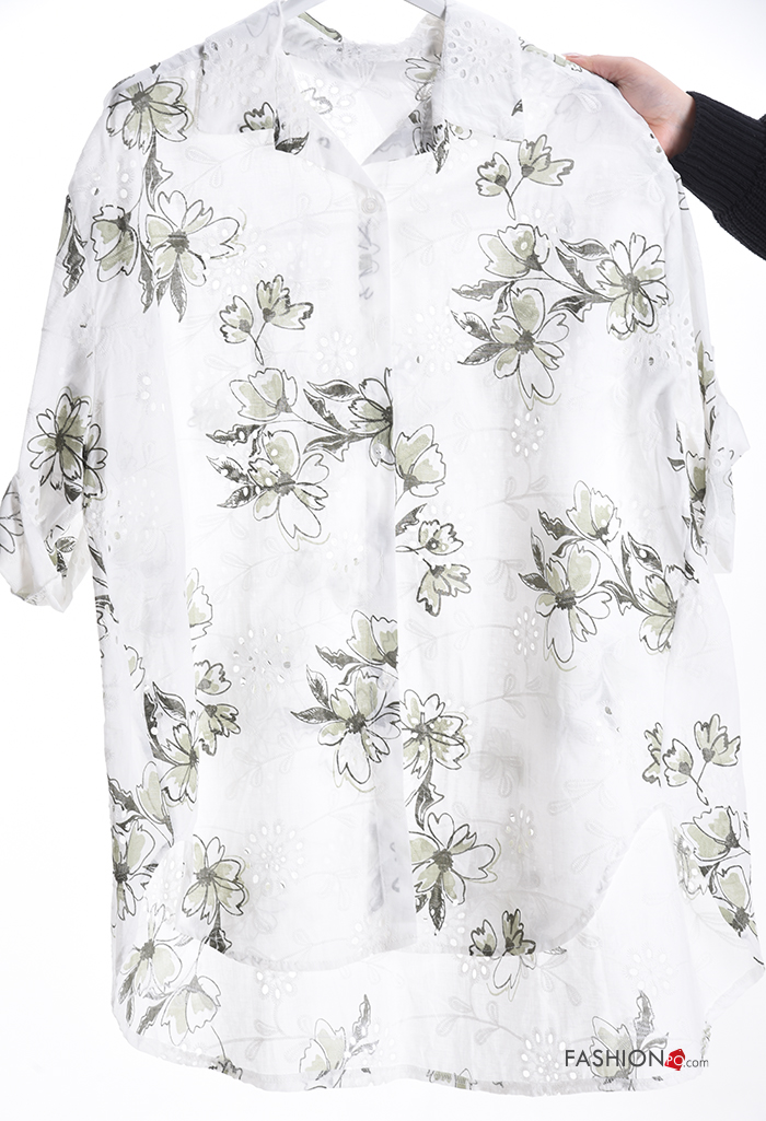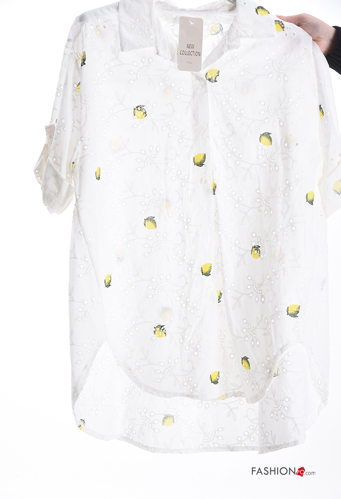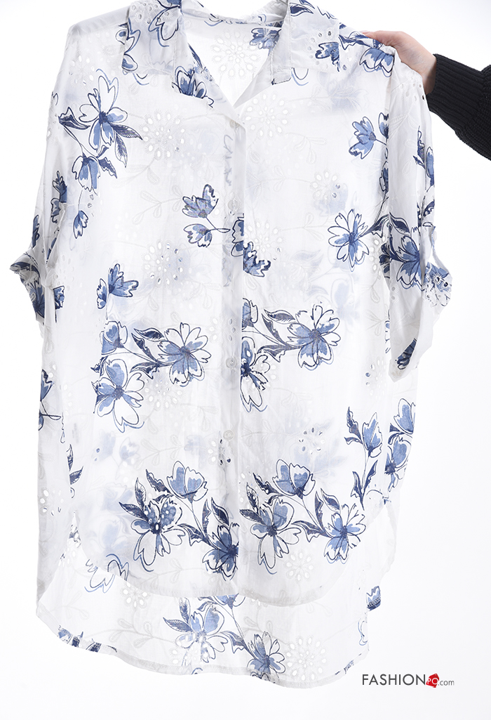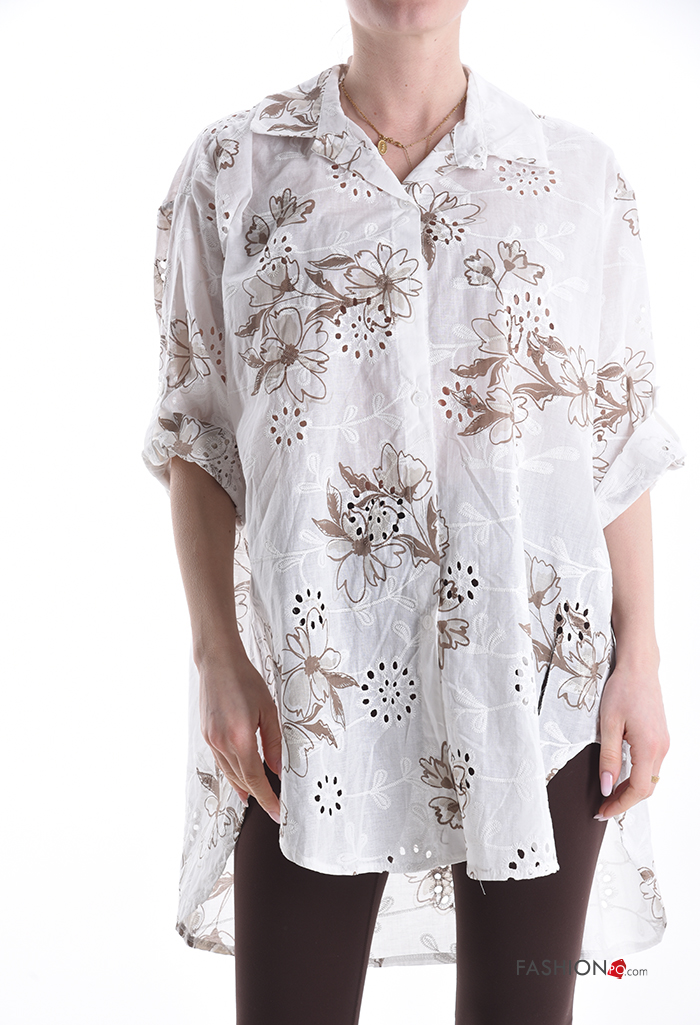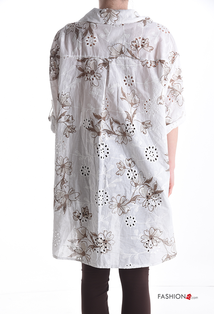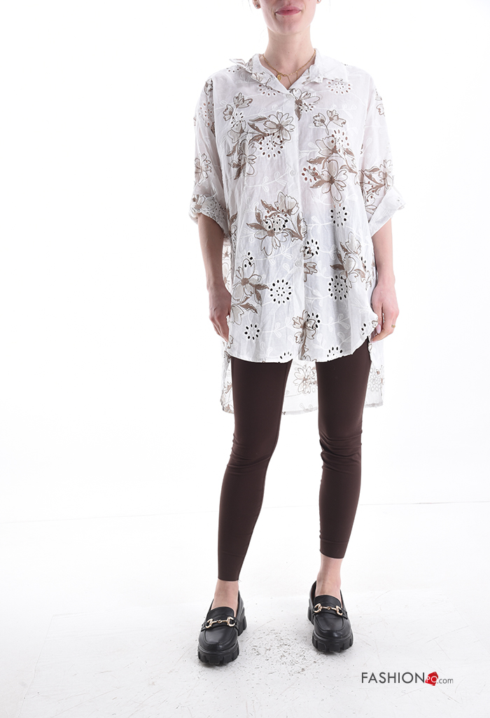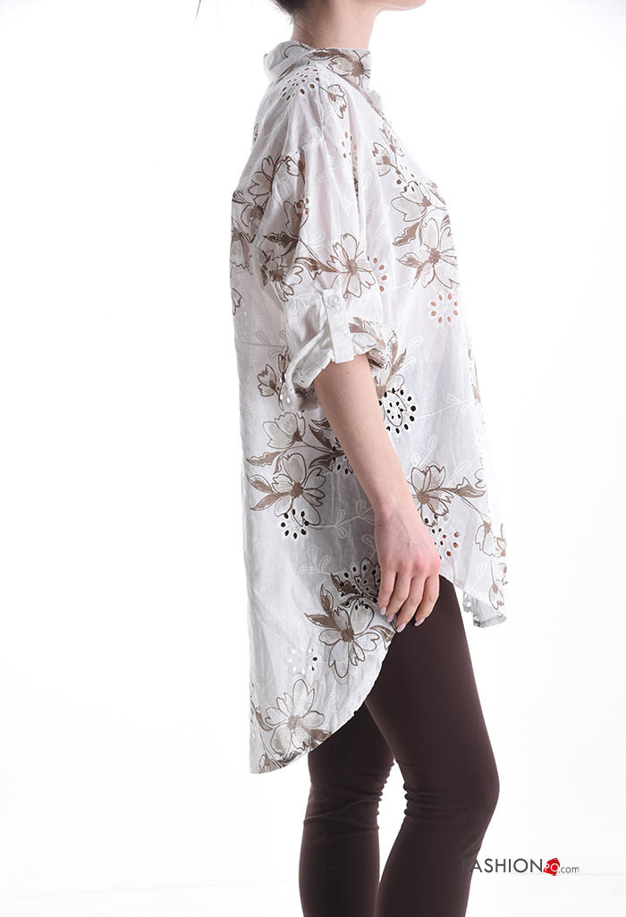 Home > Kleidung > Hemden & Blusen > Besticktes Muster asymmetrisch Hemd aus Baumwolle