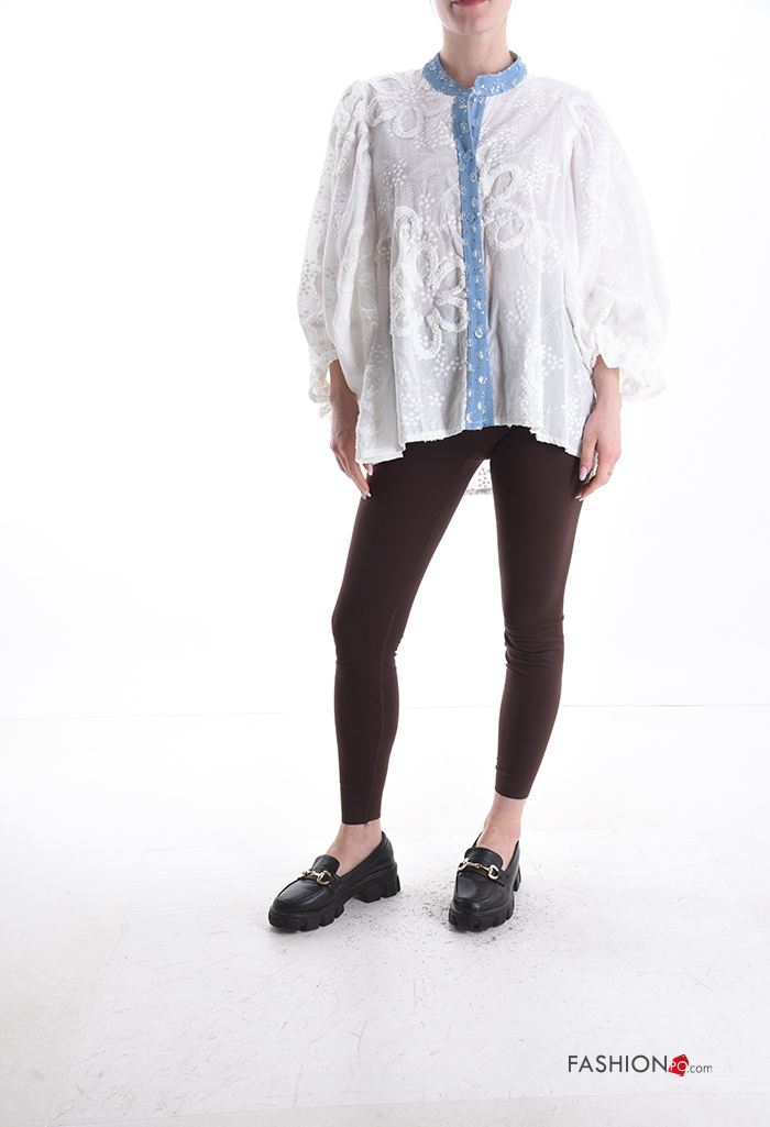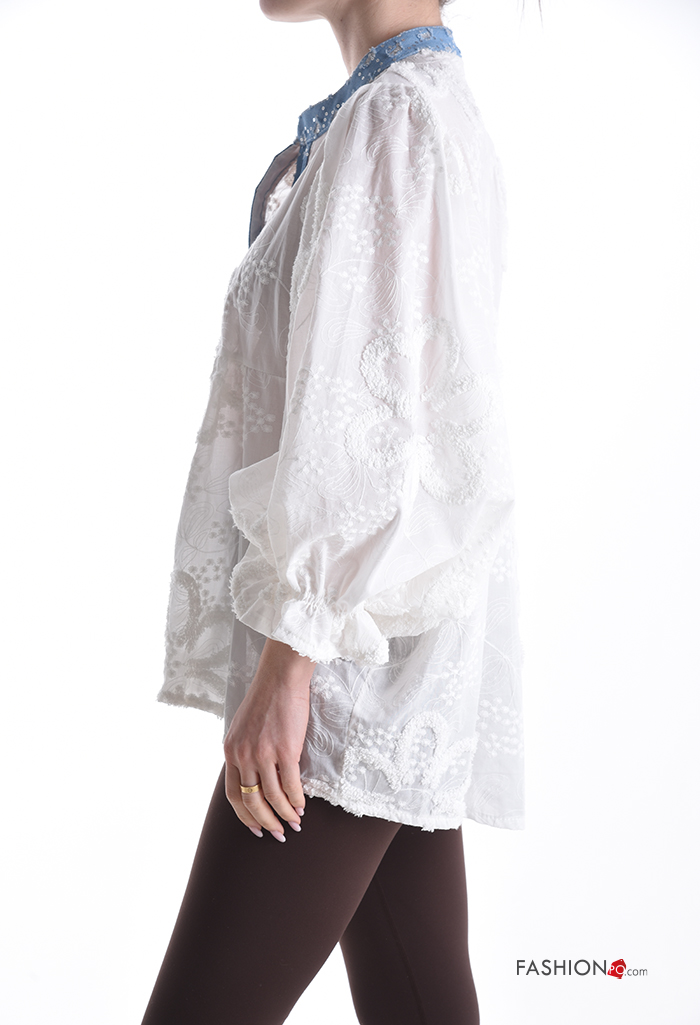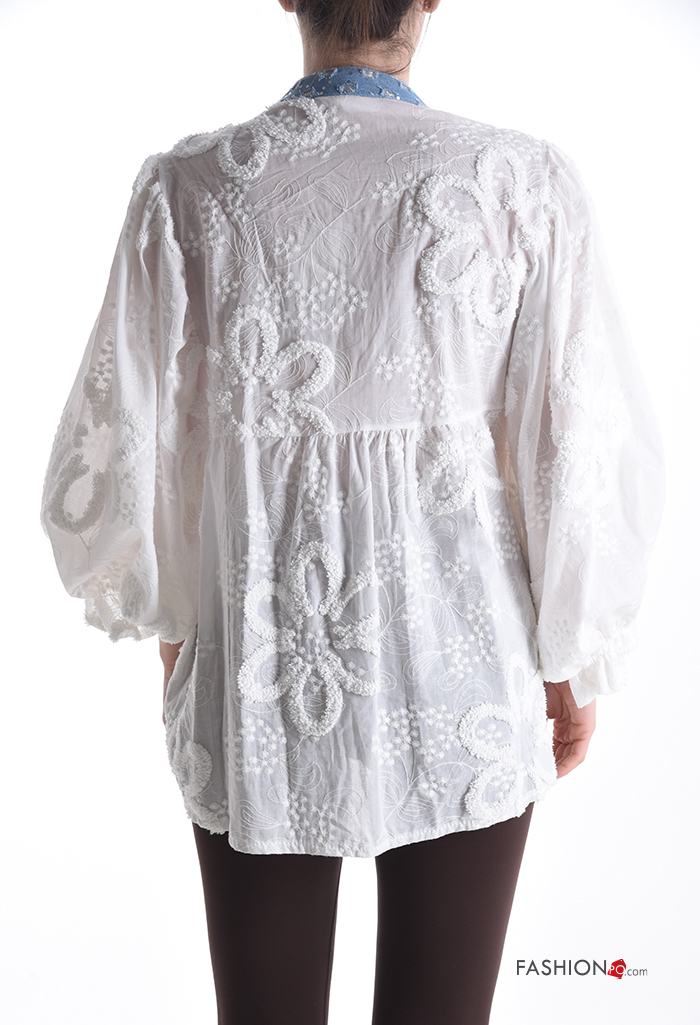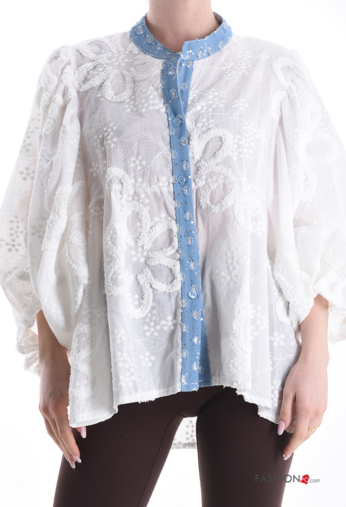 Home > Kleidung > Hemden & Blusen > Besticktes Muster ballonärmel asymmetrisch Hemd aus Seide